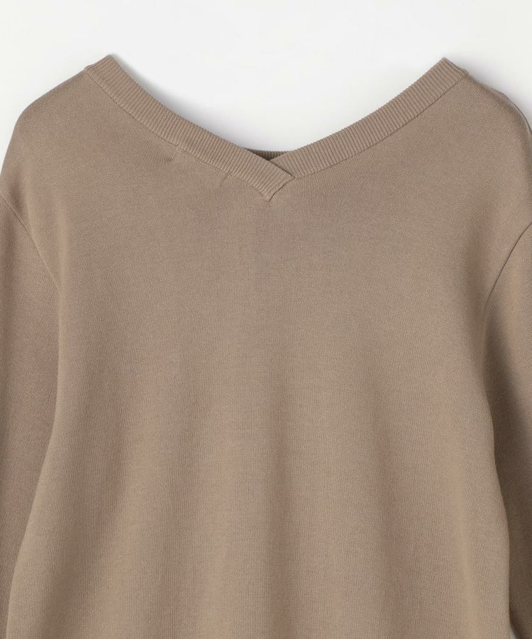 肩はセットインスリーブにし、ストレートに落ちるようなラインを設計。大人の女性にふさわしい、ゆるすぎずタイトすぎない上品なシルエットにすることで、トレンドに捉われず長く愛用できる一枚に。長めのリブ仕様にした袖には、腕まわりを細く見せる効果があります。