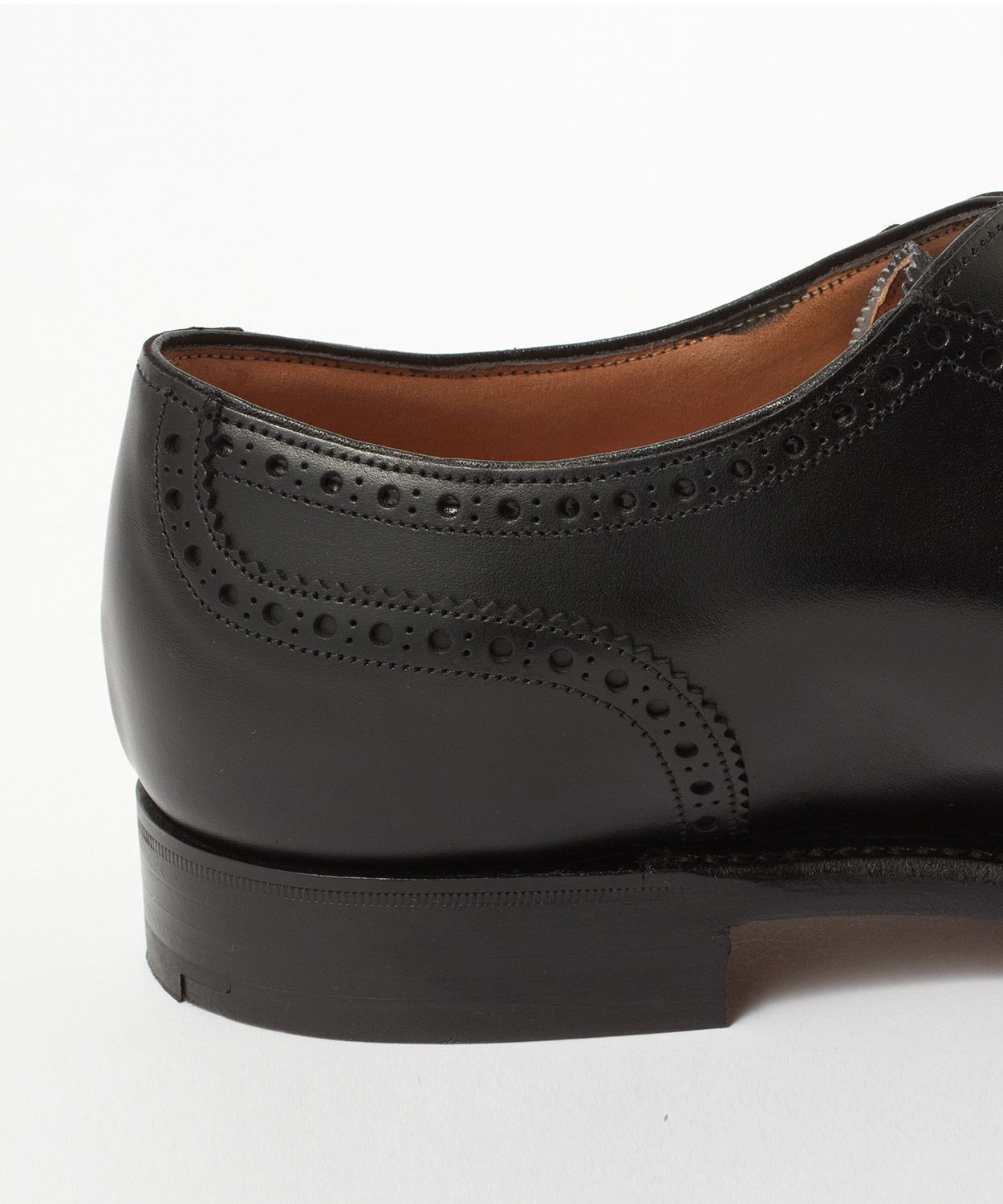 11028 LAST(木型)はチーニーが展開しているラストの中ではロングノーズです。パンチドキャップトゥがすっきりと端正な見映えになっていてドレススタイルには最適な1足。羽根部分のアデレード(竪琴型)と呼ばれる仕様は、ピンキングとパンチングを施したラインがアッパーの側面を横断していないので、サイドビューはすっきりとしたエレガントな印象。上から見ても横から見ても洒脱なクォーターブローグに仕上がっています。さりげない華やかさがあるデザインは幅広いビジネスシーンで活躍すること間違いありません。ビジネス用の2足目としても人気の高いモデルです。