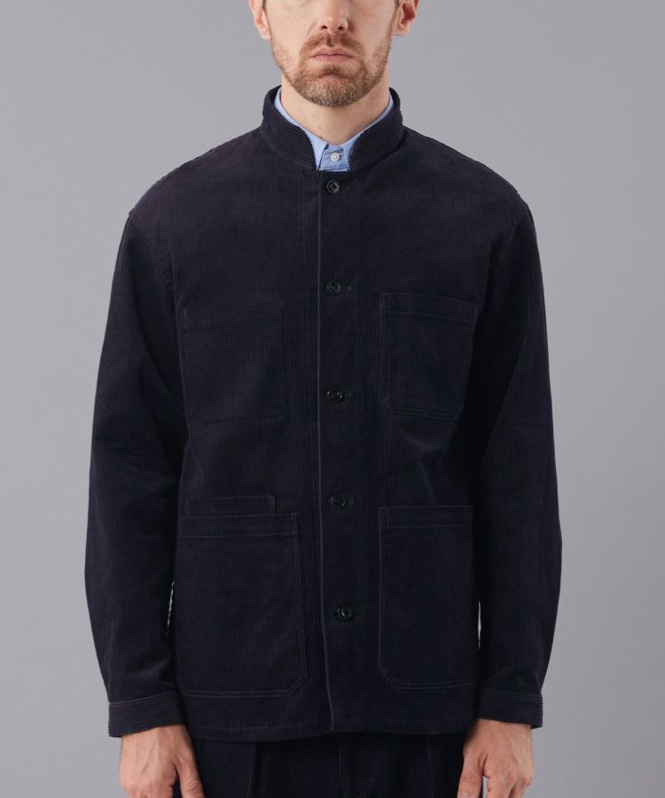 1940年代イギリススタンドカラーワークジャケットのディテールを踏襲したシャケット。