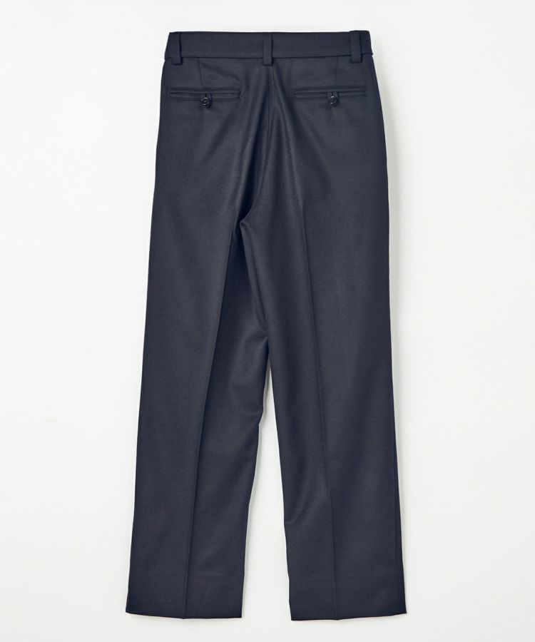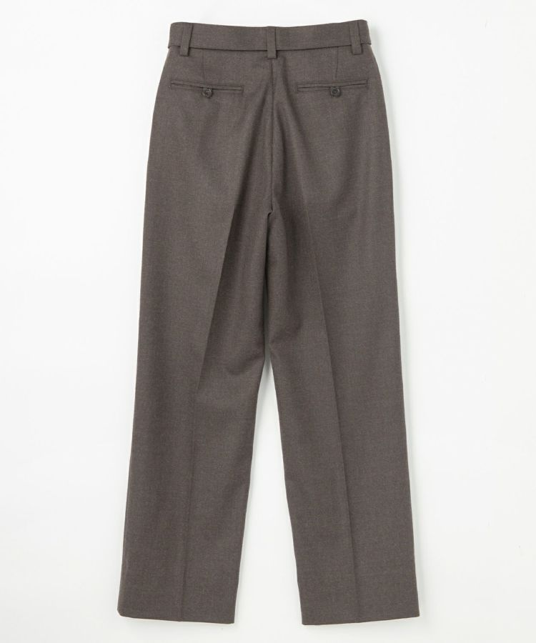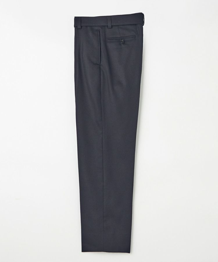 ストレートシルエットにすることでワンクッション入っても、裾上げしても美しいシルエットを出してくれます。2/60の糸を使用し、通常よりタテ糸の本数を増やす事でハリ感のある生地が特徴のハイカウントフラノ素材を採用。スッキリとした印象でオーバーサイズのニットなどと合わせるとこなれた雰囲気に。共地のベルトが付いており、垂らして着るのもおすすめです。