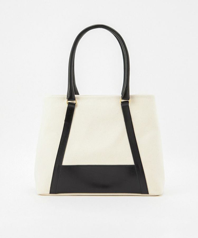 しっかりとしたキャンバス地に、しなやかなブライドルレザーを組み合わせたミディアムサイズのトートバッグ。