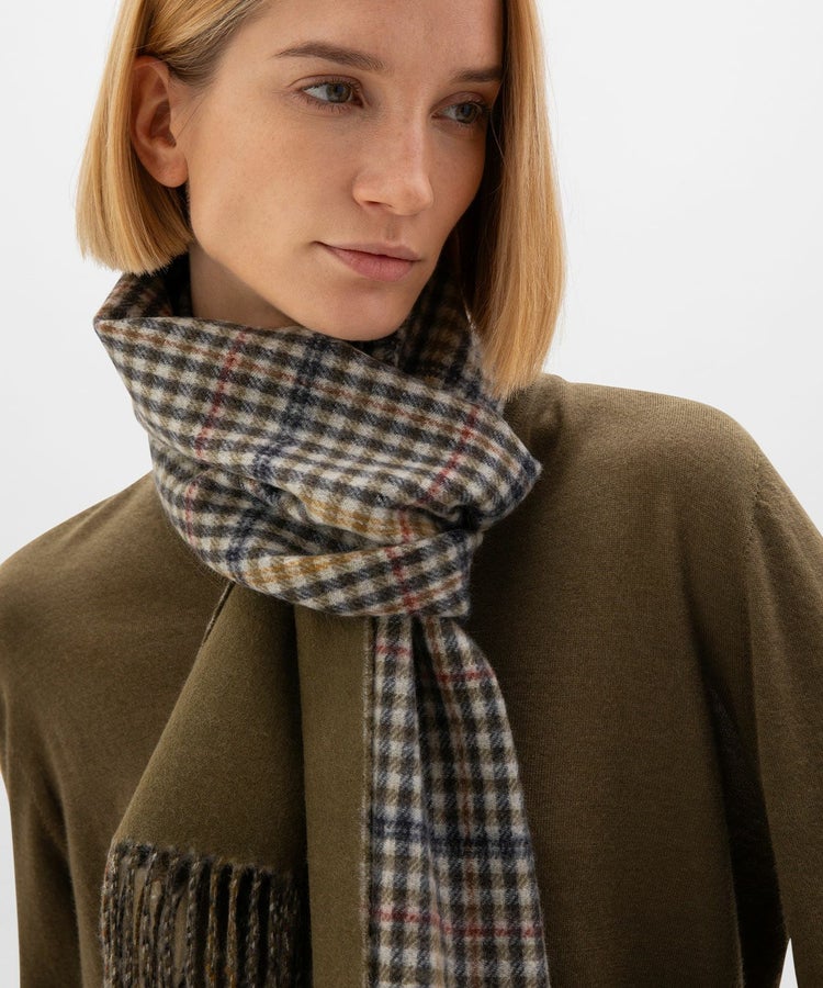 200年以上にわたってジョンストン家とハリソン家のファミリーが経営に携わり、カシミヤやビキューナ、メリノウール、ラムズウール、キャメルヘアーなどの 高級素材を使った生地、スカーフ、ホームファーニシングなどを作り続けています。 現在でも原毛の厳選から紡績、ウィービング(機織)、ニッティングまで自社で手掛けるる英国国内唯一の一貫生産するファクトリーブランド。1840年代より続くタータンチェックは、モダンブリティッシュのスタイルアイコンとして世界中の淑女や紳士に愛され続けています。