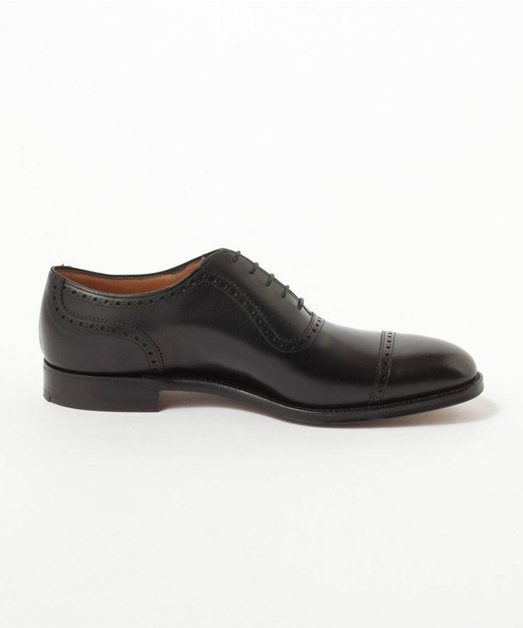 11028 LAST(木型)はチーニーが展開しているラストの中ではロングノーズです。パンチドキャップトゥがすっきりと端正な見映えになっていてドレススタイルには最適な1足。羽根部分のアデレード(竪琴型)と呼ばれる仕様は、ピンキングとパンチングを施したラインがアッパーの側面を横断していないので、サイドビューはすっきりとしたエレガントな印象。上から見ても横から見ても洒脱なクォーターブローグに仕上がっています。さりげない華やかさがあるデザインは幅広いビジネスシーンで活躍すること間違いありません。ビジネス用の2足目としても人気の高いモデルです。