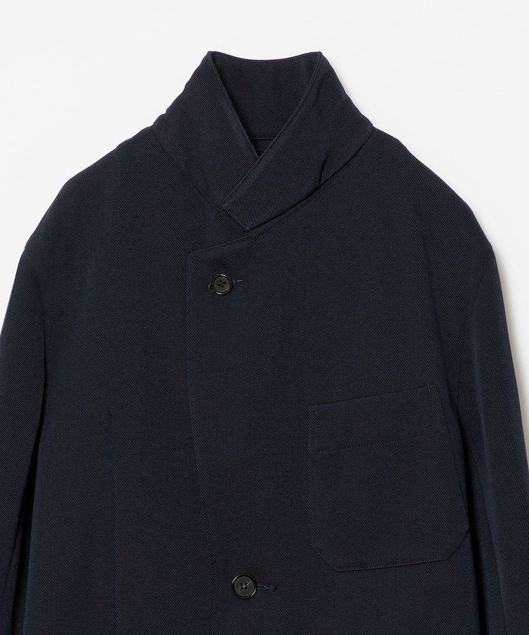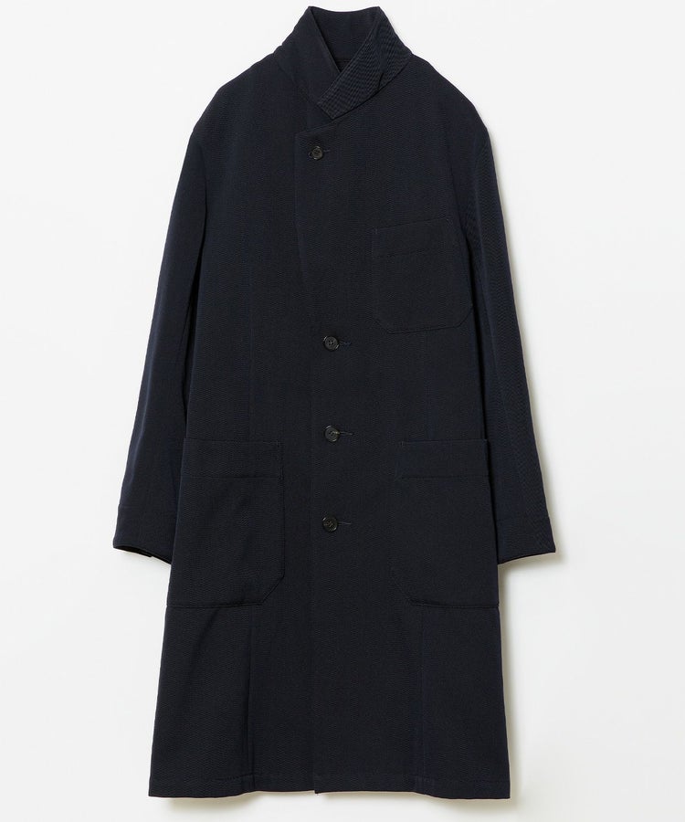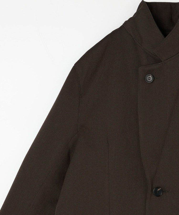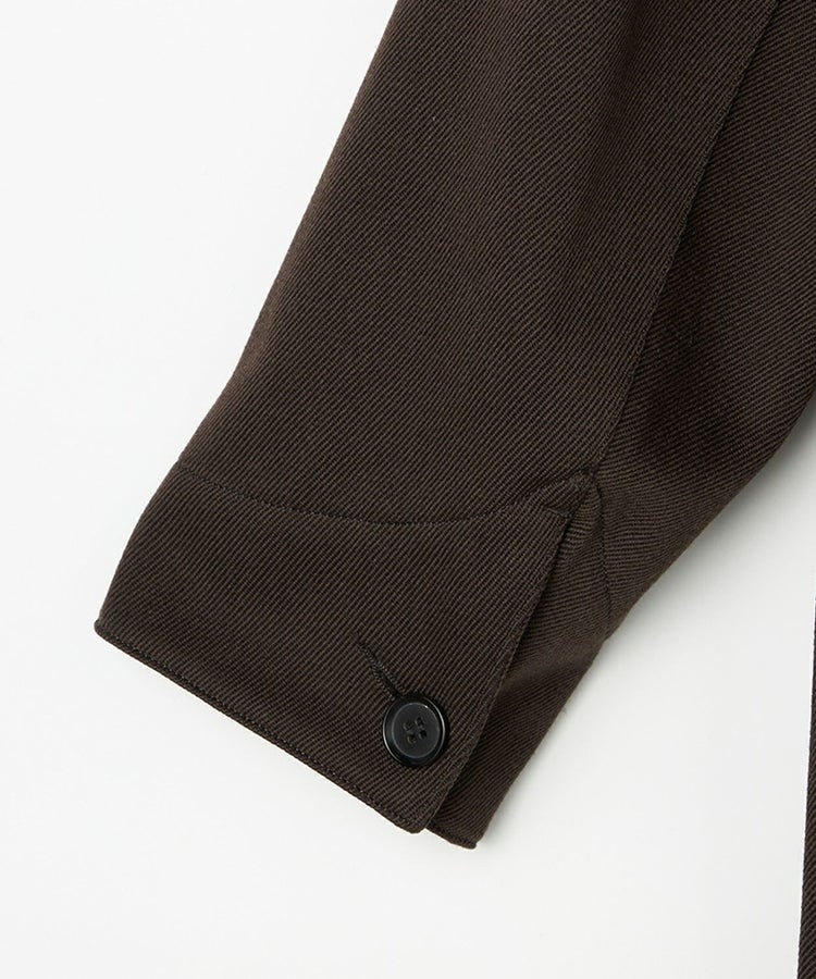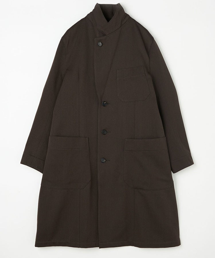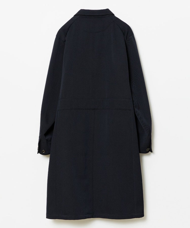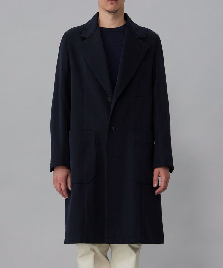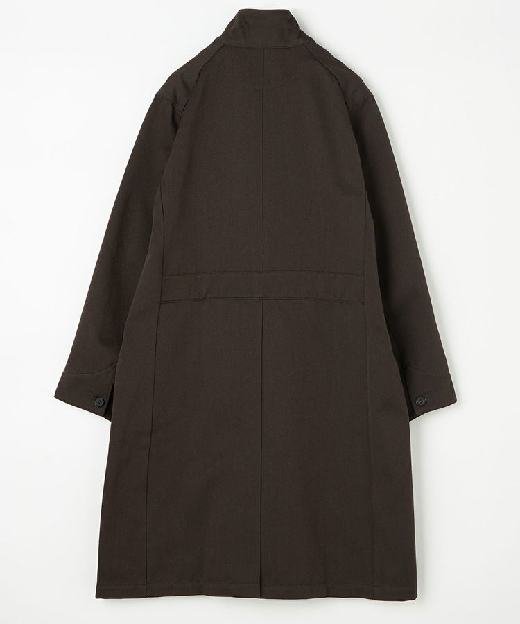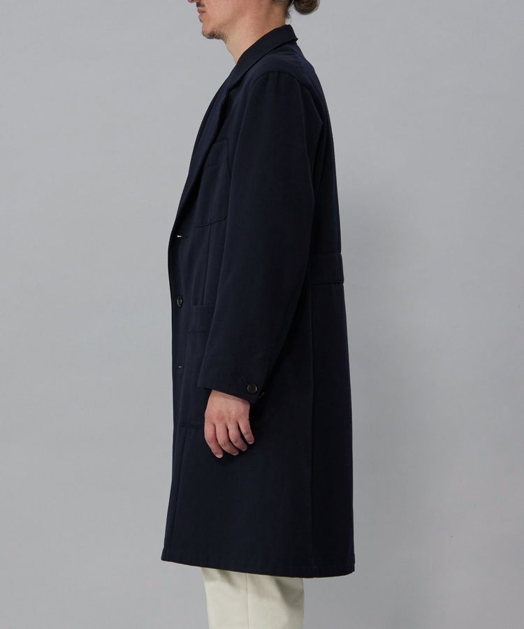 大切にしたことはドレステイストを感じられるデザイン。その為にラペル周りからVゾーンを広く立体的に、背面も肩周りをコンパクトにし、ベルトを高めにとりました。また生地にはウールとコットンを織り合わせ、ふわっとした上質な質感とワークコートらしい質感を両立。長く着込んでいく事で、生地の風合いの変化、コートが自身の体型に馴染んでいくといった過程を楽しむことができます。