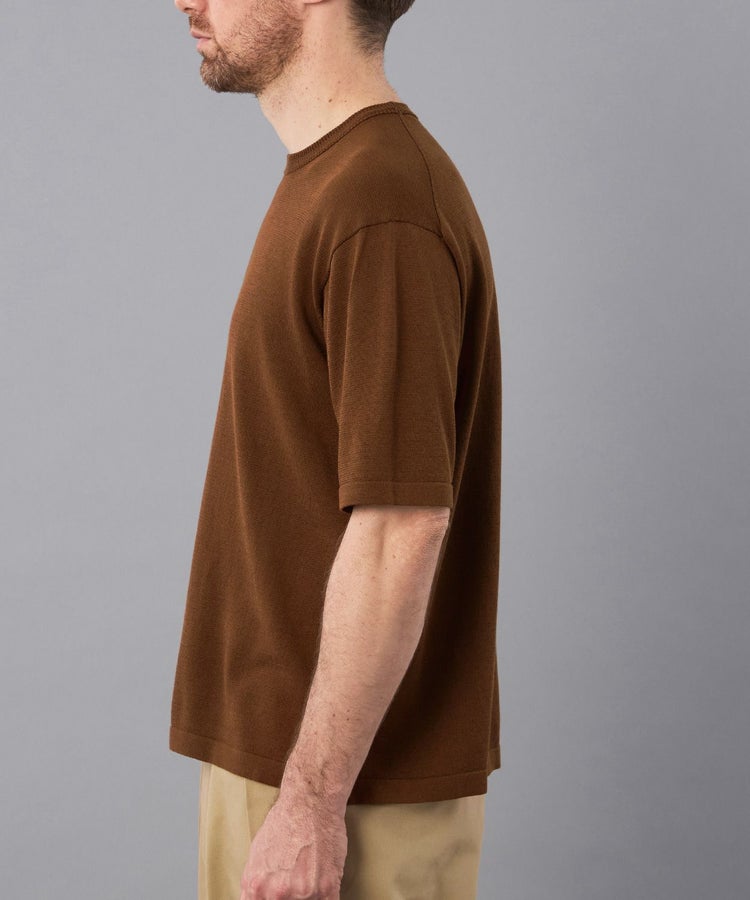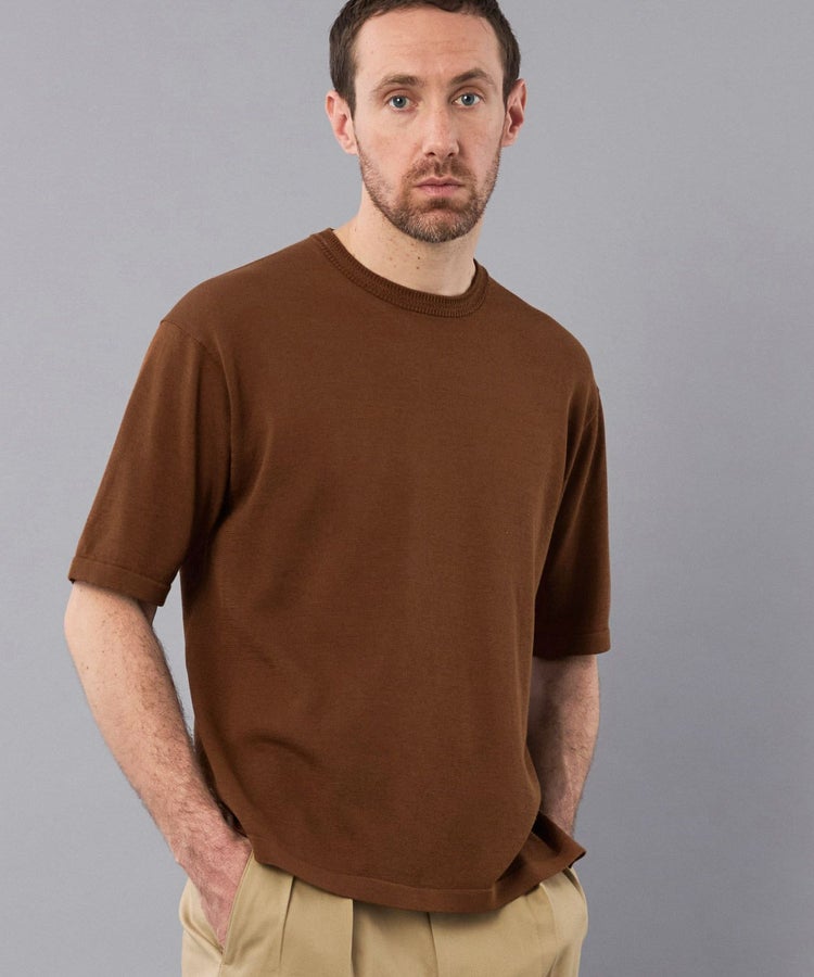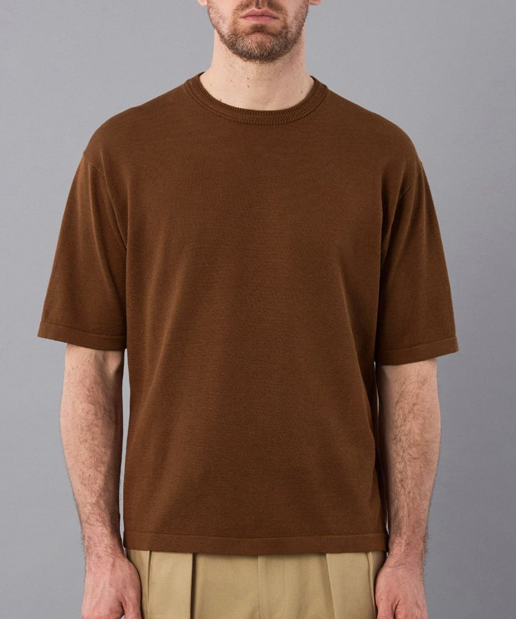 首元のヘリンボーン柄がアクセントになったリブネックTシャツ。