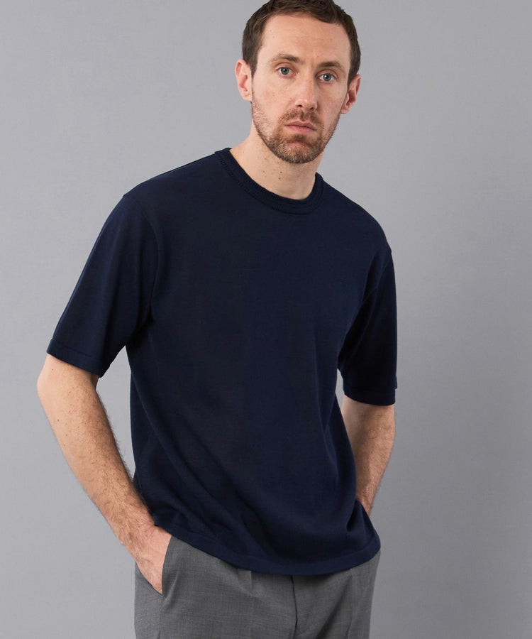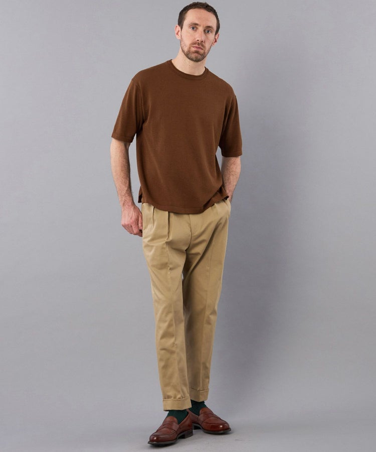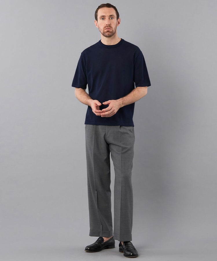 一枚でもジャケットスタイルでも合わせやすく、特にTシャツにジャケットを合わせる方が増えている昨今のビジネススタイルに相性の良い一枚。裾に取り入れたUKミリタリー由来のサイドスリットは、タックアウトで着用しても、裾がもたつきにくいように設計されています。採用された素材は手洗い可能なイージーケア素材で天然繊維の質感と合成繊維の機能性を両方兼ね備えています。