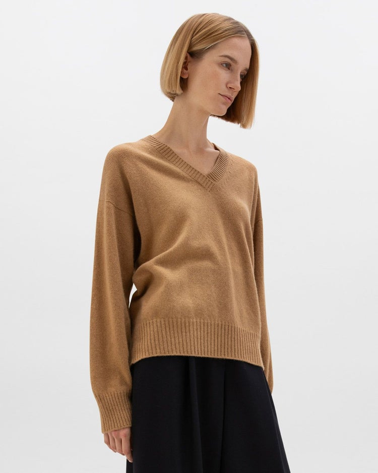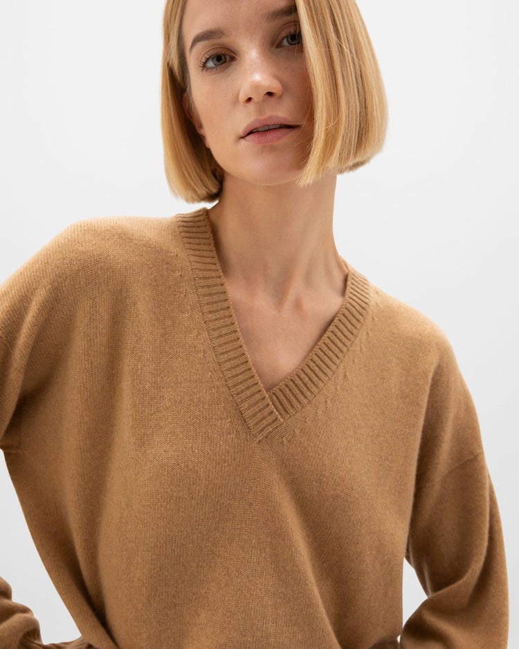 ゆったりとしたシルエットで上品な印象のVネックセーター。