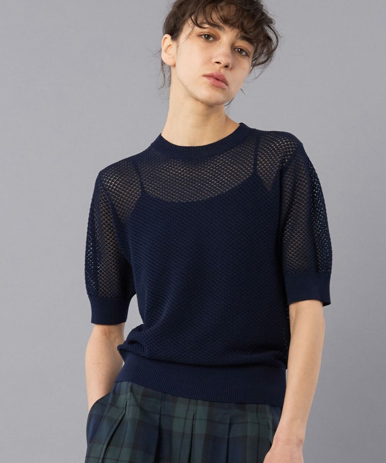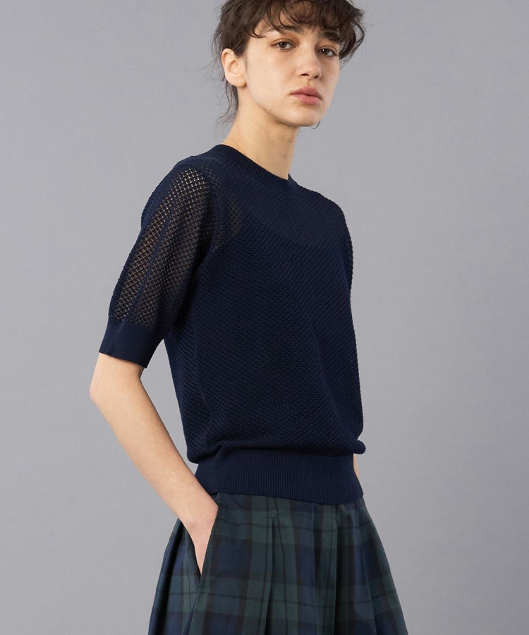 トレンドの透かし編みを採用し、吸湿・速乾性を持つ機能美に優れたニットTシャツ。
