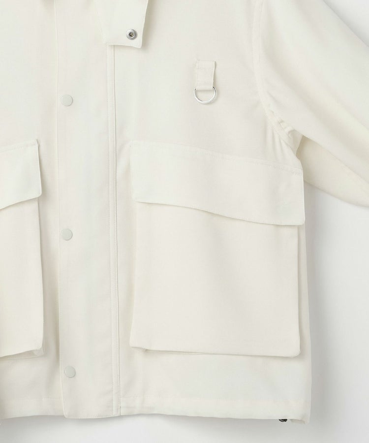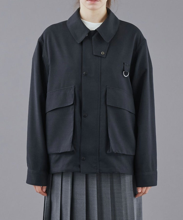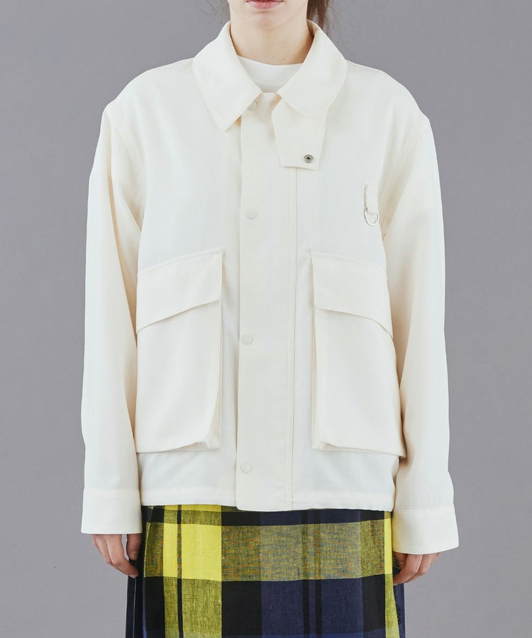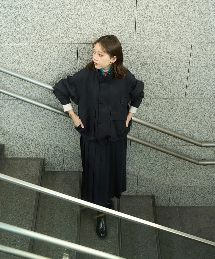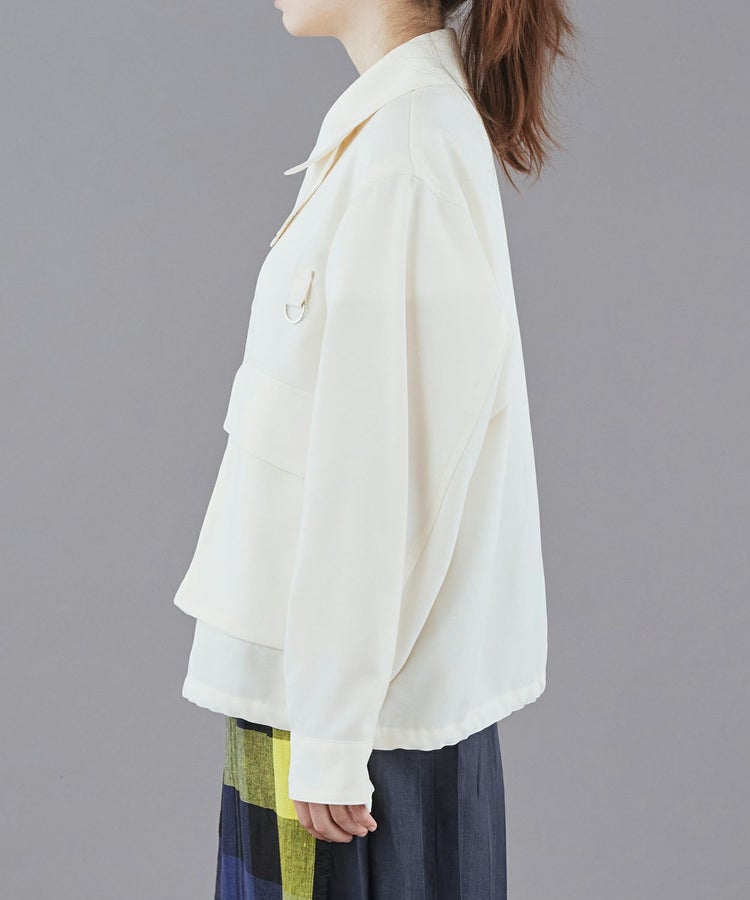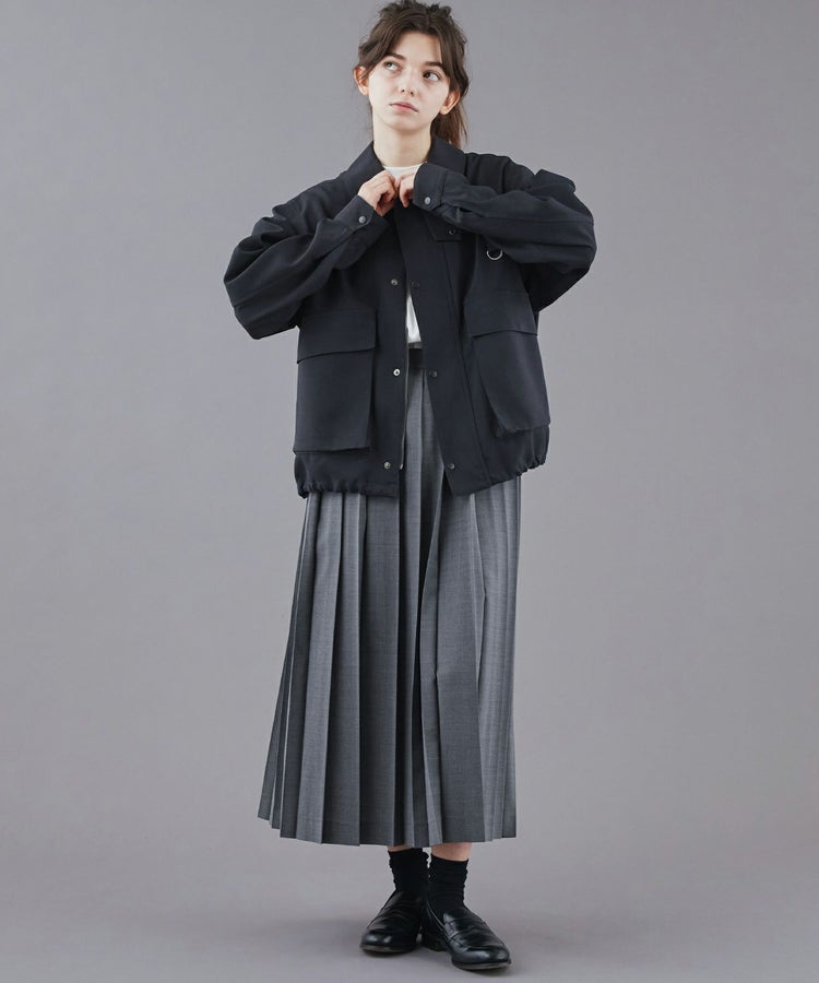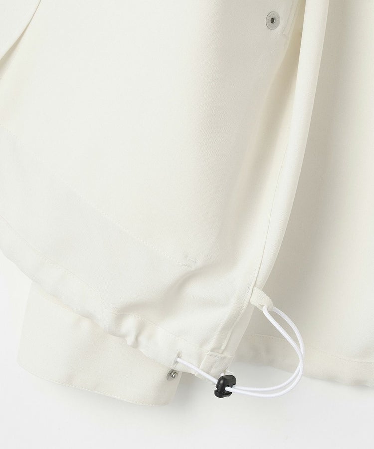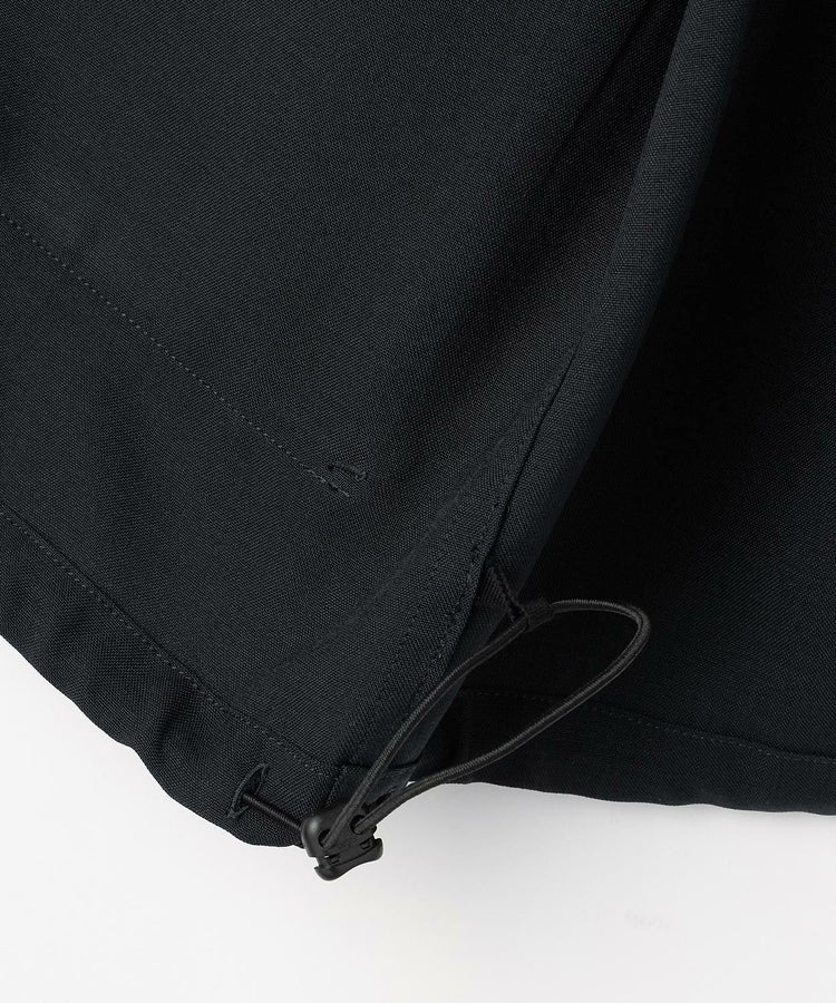 ディティールを残しながらも、大きめのポケットにマチを入れて立体的にし、コーディネートのポイントになるようデザイン。サイドからも手を入れられるダブルポケット仕様で、裾にはシルエットを変えられるようコードを通し、絞れるようになっています。ウールライクなトロピカルを使用することで、上品で軽やかな仕上がりになっています。