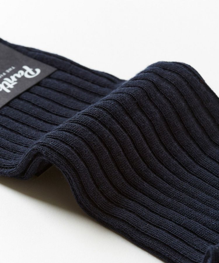 スーパーファインメリノウール混紡で伸縮性があり履き心地が良い無地のリブソックス。