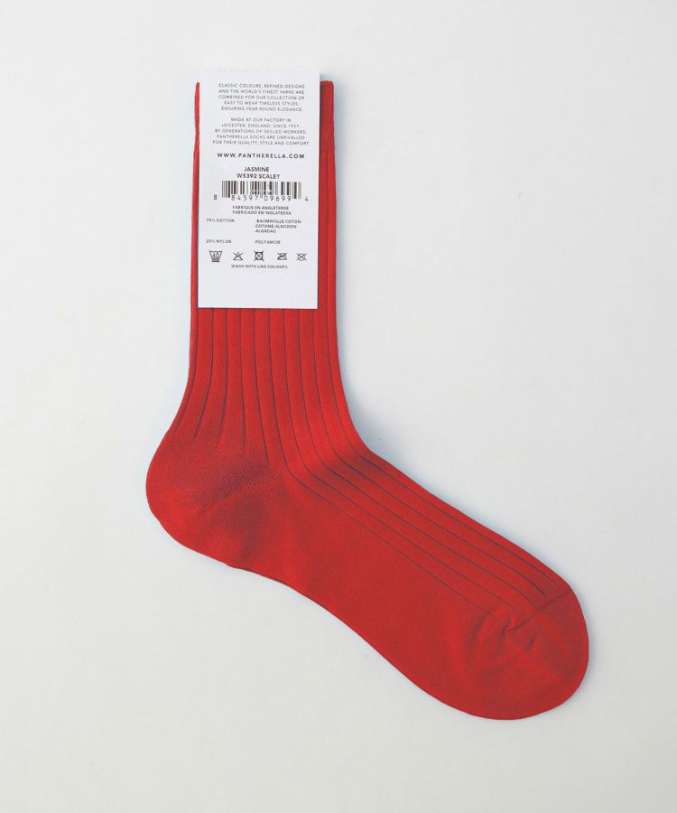 パンセレラ・ソックスの特徴は"Fine Linked Toe"と呼ばれるつま先の閉じかがり仕上げにあります。滑らかで柔らかな均一した繋ぎ目に仕上がり、履いたときにゴロつき感がなく、足にぴたっと吸い付くよう履き心地が得られます。また使用される糸はすべて同社独自の仕様で撚られた糸で、スーパーファインメリノウール、エジプト綿、シルク、カシミヤなど、選りすぐった品質のものだけを使用して作られています。