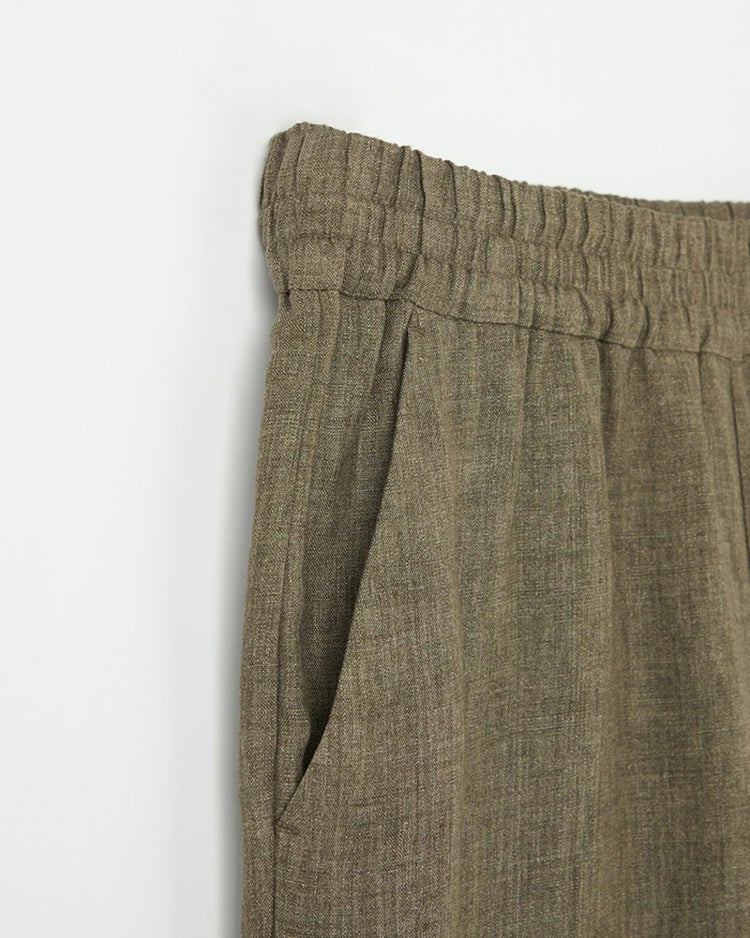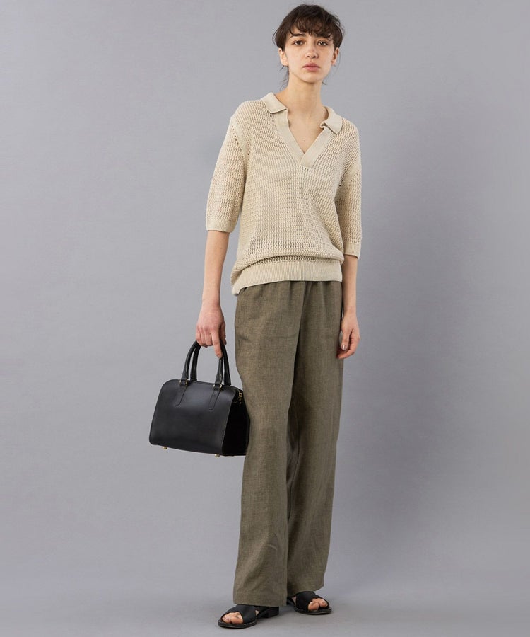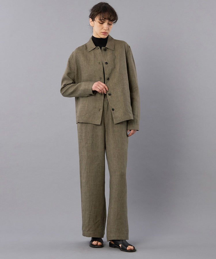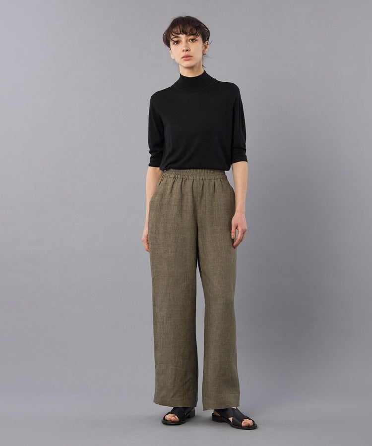 ウエストはゴム入りで、ドローコードを内側にあしらうイージー仕様でストレスフリーな着心地を実現しました。素材にはイタリアのファブリックメーカー、LEOMASTER(レオマスター)製の上質なフレンチリネンを使用した春から秋にかけてのワードローブに欠かせないアイテムです。