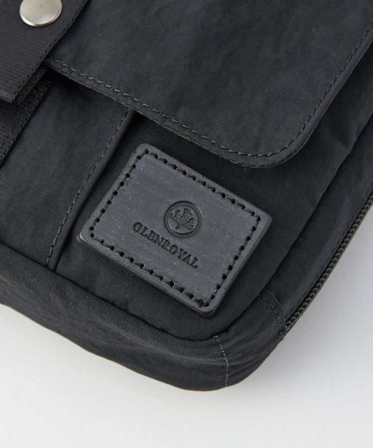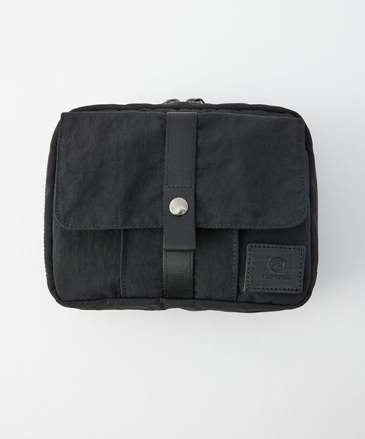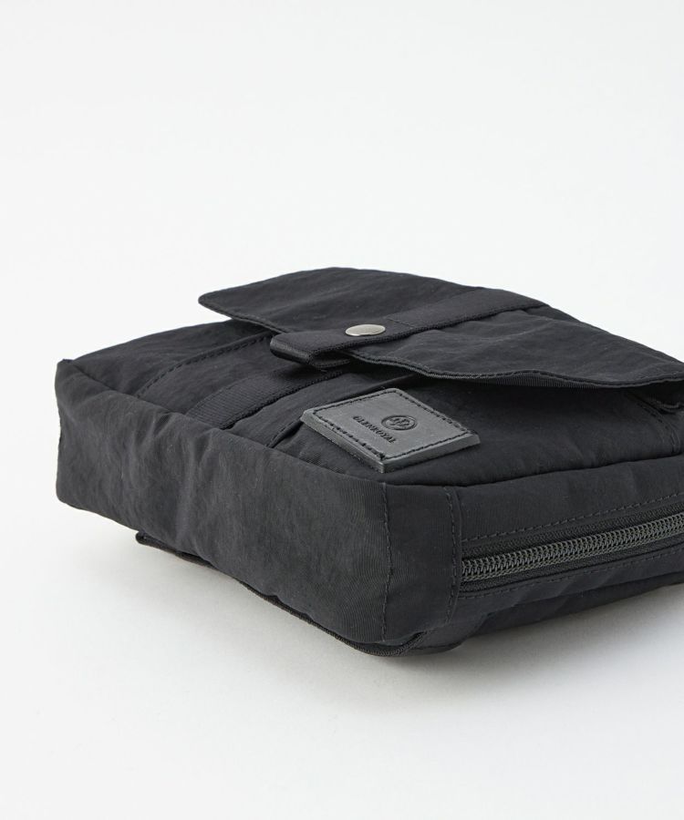ショルダーストラップは取り外し可能で、ポーチとして2WAYで使用可能です。内側の両サイドにマチを作り、開きやすさも確保。ポケットが設置されており、小さい物を収納することができます。フロントポケットはスナップが2段階で留めることでき、背面のスナップテープで大きい鞄などに止めつけることも可能です。ナイロン生地にはアクリルをベースとしたバッグコーティング剤(広塗布用)を塗布し、優れたハリ感と撥水機能を持たせました。シーズン問わずお使いいただけるアイテムです。