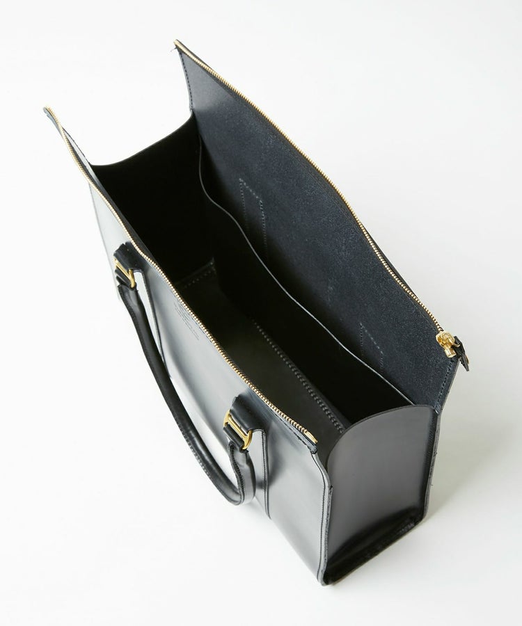 側面から見た際のフォルムが特徴的なブリーフトートバッグ。