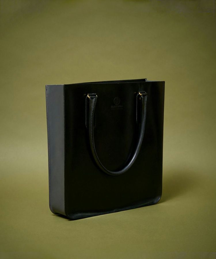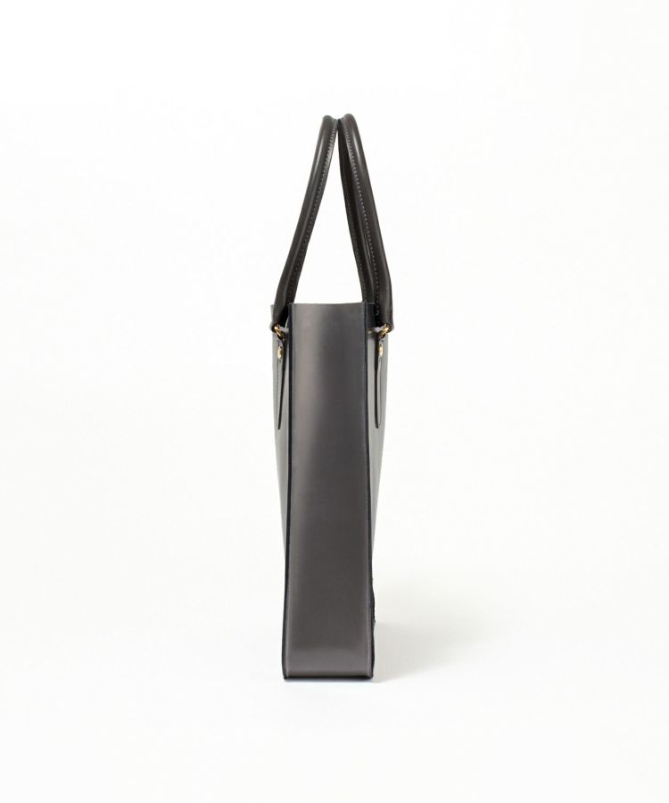本モデルはブライドルレザーを2色コンビネーションで取り入れた、ブリティッシュメイドだけの特別な仕様になっています。マチ(厚み)が約8cmあり、パッと置いた際に自立するので、訪問先で足元に置いても安心な仕様。ハンドルとボディーを繋ぐのは、馬具で使用される英国製のアンティークブラスのパーツ。堅牢さに優れ、同じ馬具由来のブライドルレザーとの相性も抜群です。バッグそのものがシンプルな作りになっているため、ビジネスシーンにはもちろん、休日などオンオフ問わずお使いいただけます。