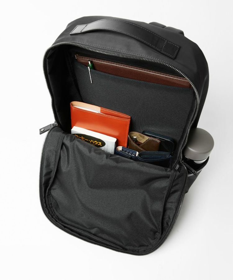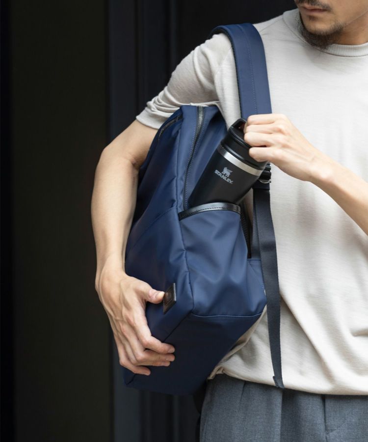 オンではA4ファイルやノートパソコン(13インチ)を、オフでは日帰り荷物や着替えなど一日に必要な荷物を丸ごと入れることも可能なサイズ感。バッグの両サイドには、傘や飲み物などをすぐに取り出すことができるポケットを設計。荷物をたくさん収納した際にも美しく見えるよう計算されているのも特長。品の良さを大切にしながらも、機能性を損なわないようにしているのがグレンロイヤルのこだわり。素材は程よい光沢があるナイロンツイル(撥水加工)を用い、随所にブライドルレザーをあしらうことで品の良さを演出。肩ひもと背面はメッシュ素材に施し疲れにくい設計に。持ち手やロゴパッチ、サイドポケット口、ジッパープラーにグレンロイヤルのアイコンでもあるグレンロイヤルの定番革ブライドルレザーを使用。長く愛用することで経年変化を楽しむことができます。シンプルながらも高級感があり、どこか英国らしさを感じさせるデイバッグに仕上がっています。