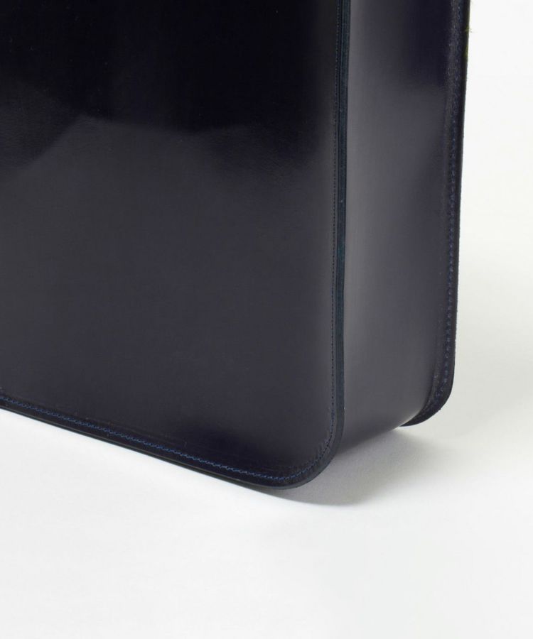 バッグのマチ(厚み)は約8cm。パッと置いた際に自立するので、訪問先で足元に置いても安心な仕様。ハンドルとボディーを繋ぐのは、馬具で使用される英国製のアンティークブラスのパーツ。堅牢さに優れ、同じ馬具由来のブライドルレザーとの相性も抜群です。バッグそのものがシンプルな作りになっているため、ビジネスシーンにはもちろん、休日などオンオフ問わずお使いいただけます。