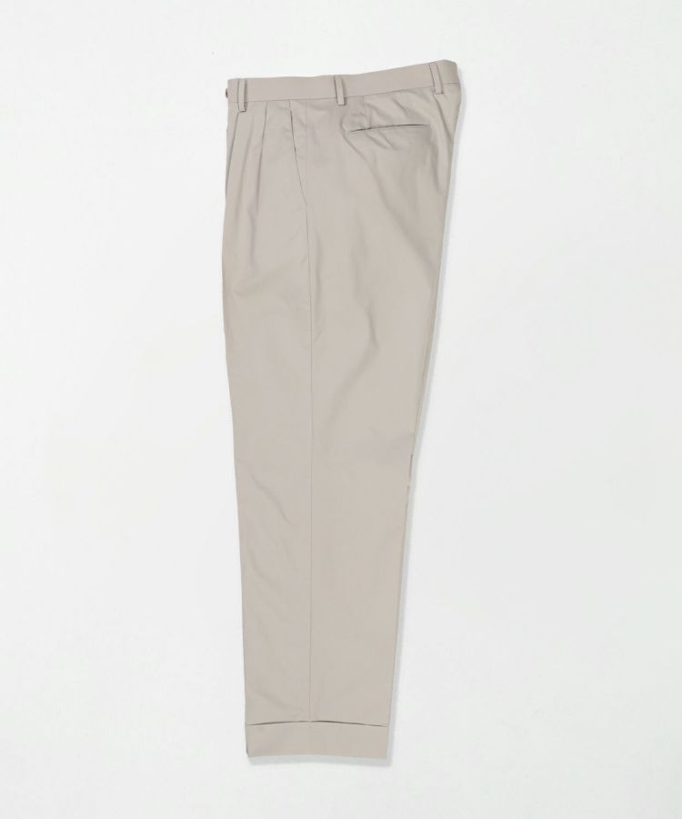 イメージソースとしたのはロイヤルネイビー(英国海軍)のホワイトドリルトラウザー。本来のシルエットよりも膝と裾巾を細くしテーパード感をやや強めたオリジナルバランス。パターンに振り込みを入れて、真っ直ぐ立った時に、キレイにストンと落ちるよう工夫を入れ立ち姿の美しいシルエットにも拘りました。ヒップサイドの脇線は真っ直ぐではなくカーブを強くし、もたつかないようフィットするデザインに。マーベルト(※)仕様のためシャツをタックインした際にズリ上がり難くなっております。オンオフがシームレス化する今のライフスタイルに最適なパンツです。