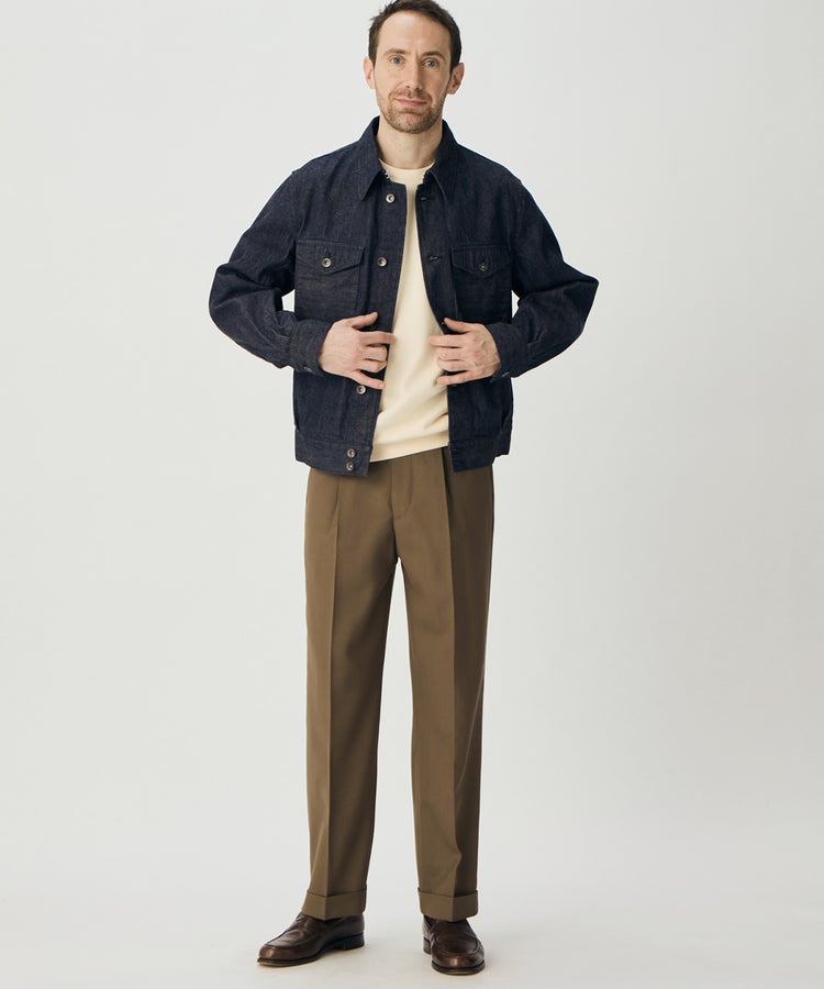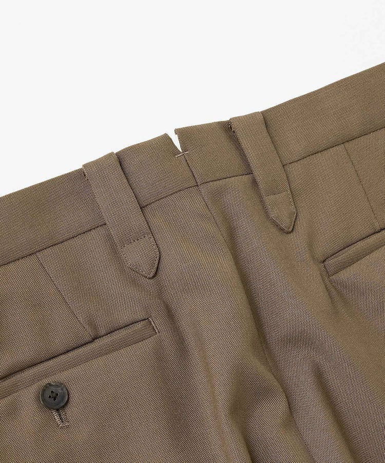 パンツの原型はイギリス軍の「No.2 DRESS PANTS」ですが、原型を踏襲しつつ、特徴的なベルトループのデザインや太さなどを調整していき、原型よりも上品で大人が穿ける顔つきに仕上げています。実用性を考慮し、ベルトループが6本になっているところもポイント。