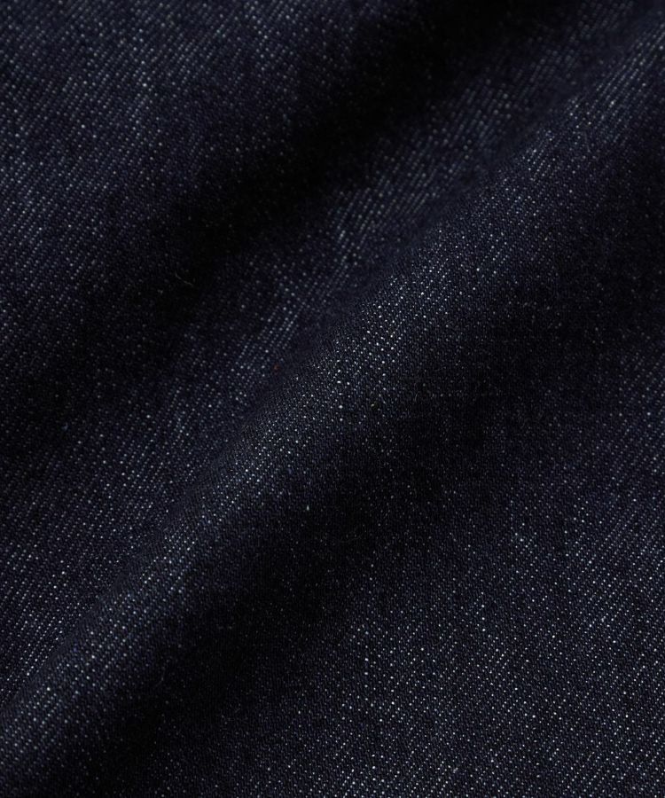 太さにムラのあるナチュラルなスラブ糸で織り上げた13ozデニム。スラブデニム特有の、手織りのような不均一な凹凸感は、ヴィンテージアイテムに見られるクラフト感を彷彿とさせます。