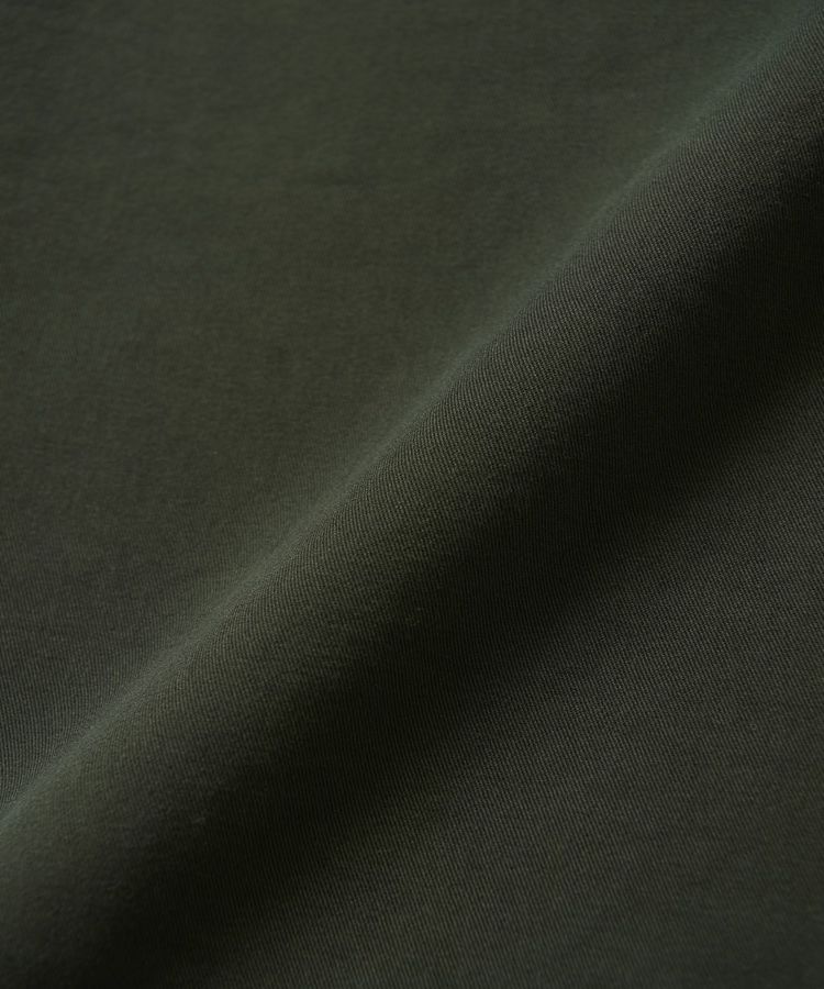 生地は60番双糸に追撚をかけて高密度で織り上げたドライタッチな生地を採用。さらに製品染めをかけることで、表面に独特なしっとりした微起毛感があり、ヴィンテージのような味わいある生地感に仕上がっています。着用を繰り返すと自分の体に馴染みながら、くたっとしたカジュアルな経年変化が楽しめるアイテムです。