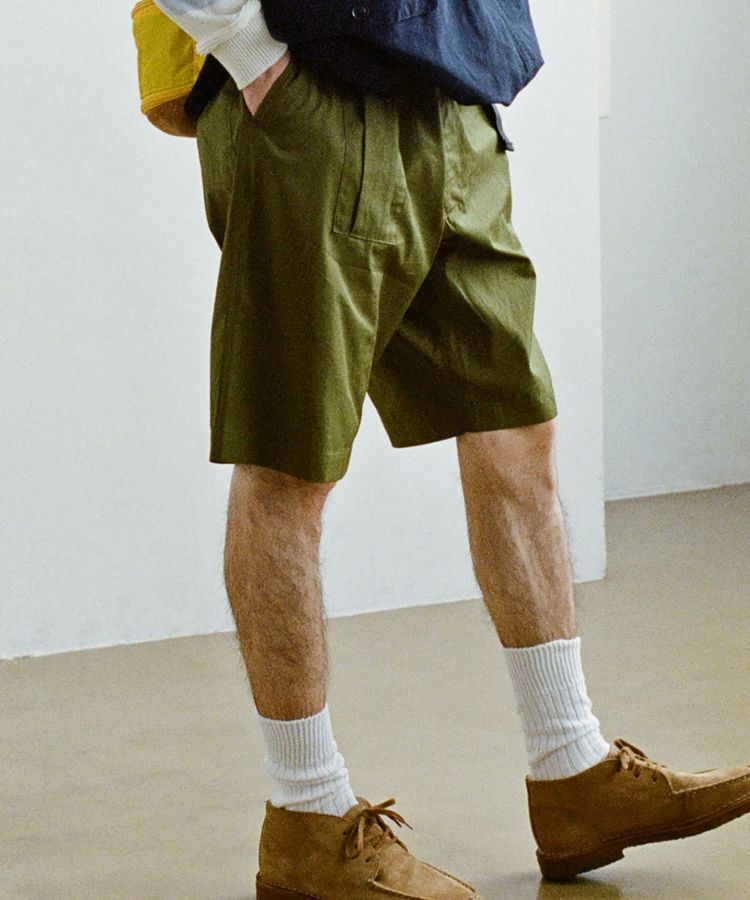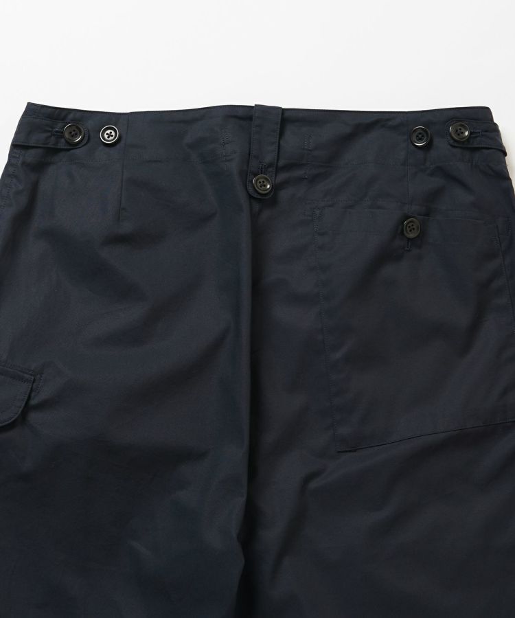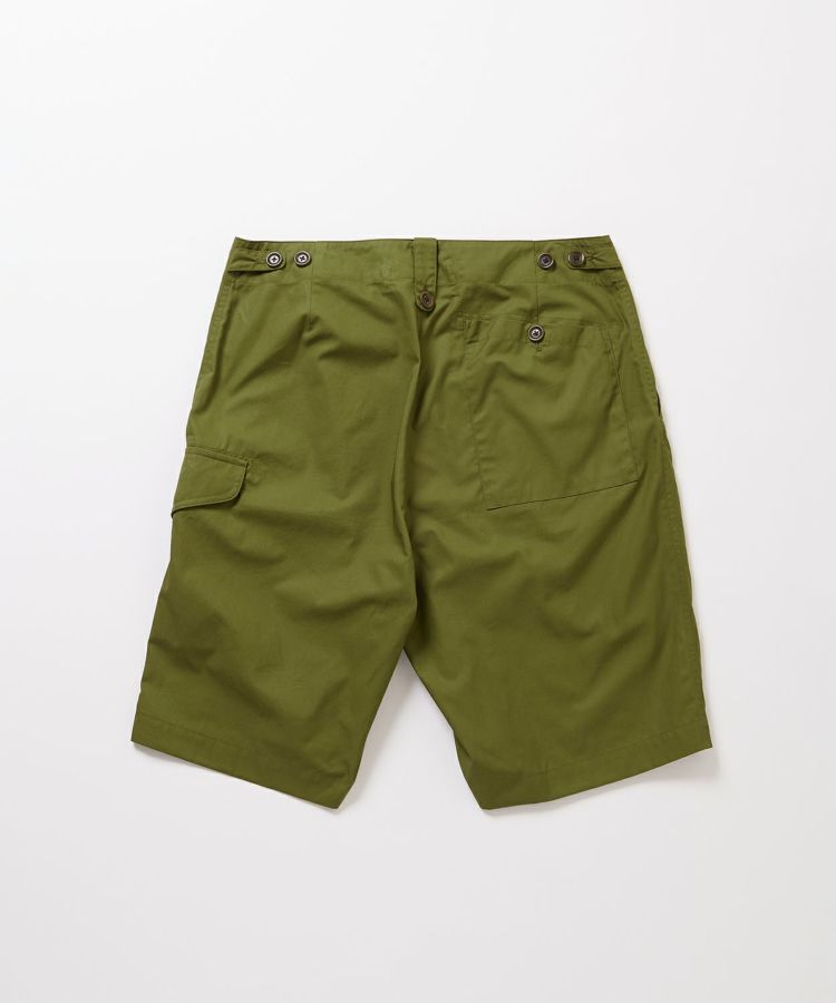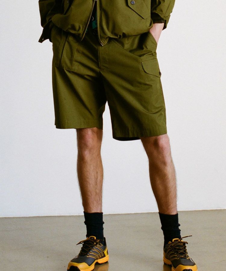 イギリスの定番的なコンバットトラウザーズをベースにデザイン。特徴的なポケットはイギリス軍の伝統的トラウザーズの形状を再現しています。サイドにウエスト調整可能なタブを配置しているため、薄手のTシャツからスウェットなどの厚みがあるインナーウェアまで、タックインして着用することが可能です。シティでもアウトドアでも活躍できるオールラウンダーショーツに仕上がっています。