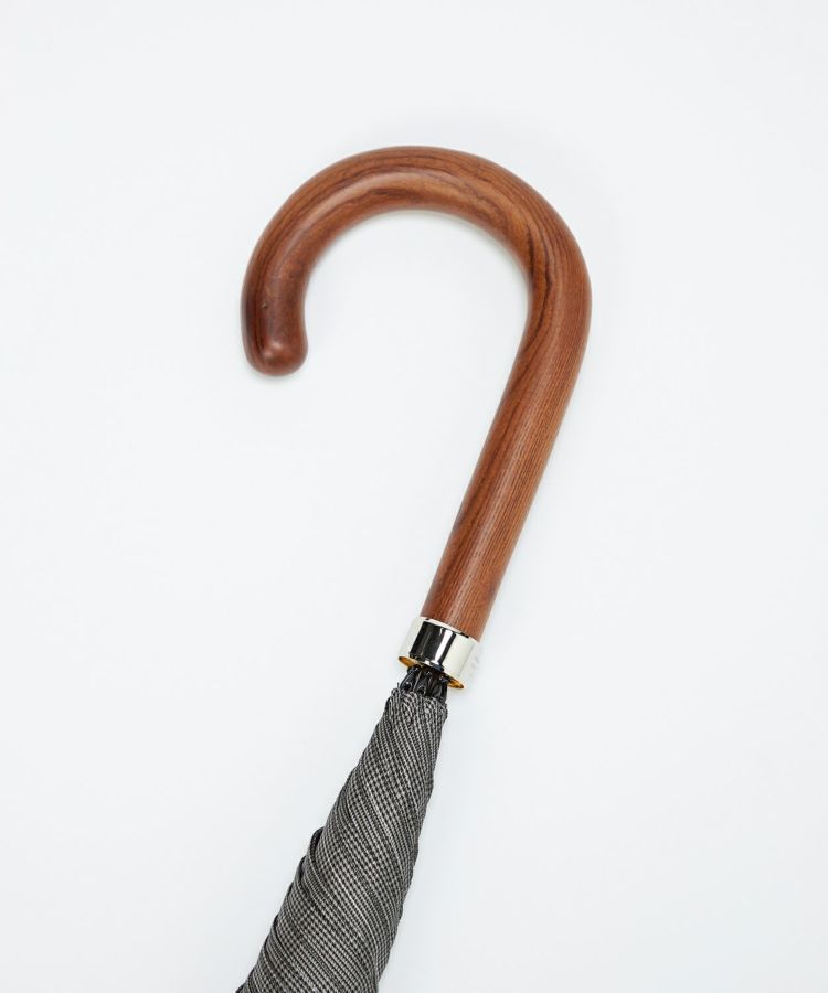傘地には高級感のあるポリエステル100%の生地を使用し、UV加工も施されているため日差しが強い時は日傘としても活躍。持ち手には上質な木材を使用。はっきりとした美しい木目が流れております。