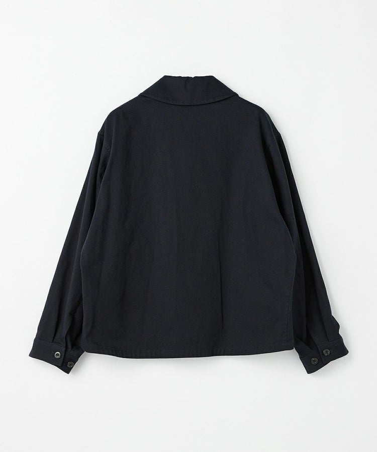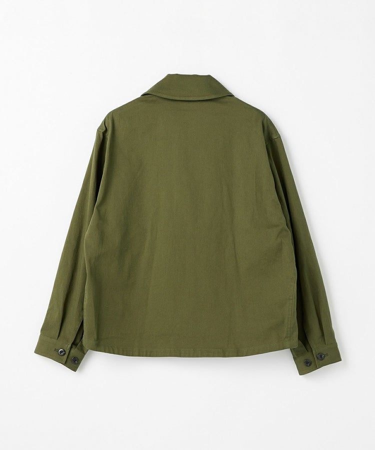 ゆったりとした身幅と短めの着丈が程よく今っぽい雰囲気になっています。また、大きめの襟とボタン位置が中心から少しずれるアシンメトリーなデザインといった特徴的なディティールは活かしつつも、現代の生活で不必要なディティールはそぎ落とし、ミニマルな印象で日常で大人が着られるフライトジャケットに昇華。