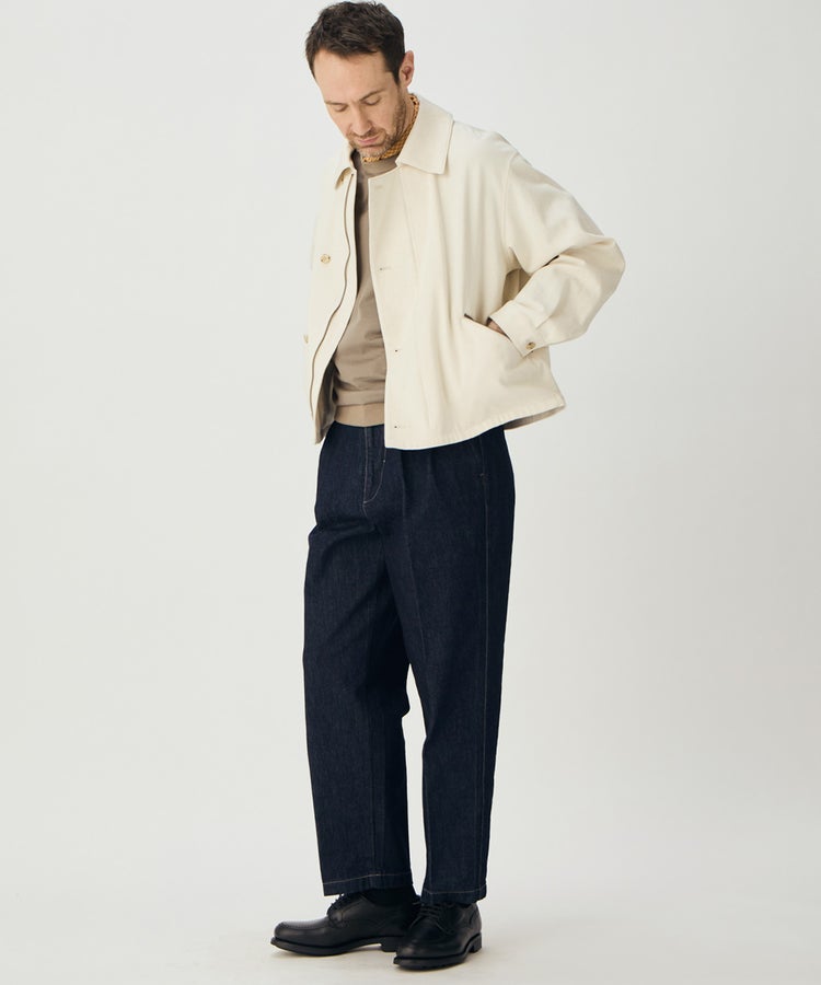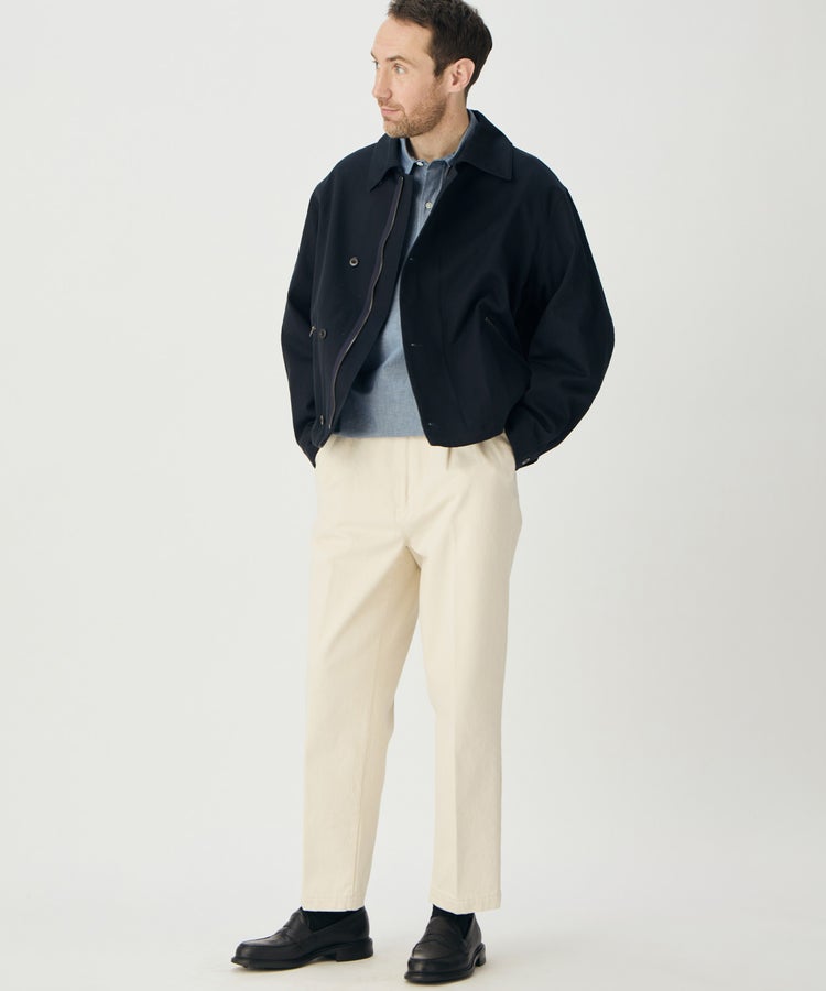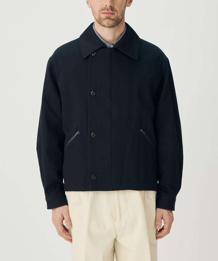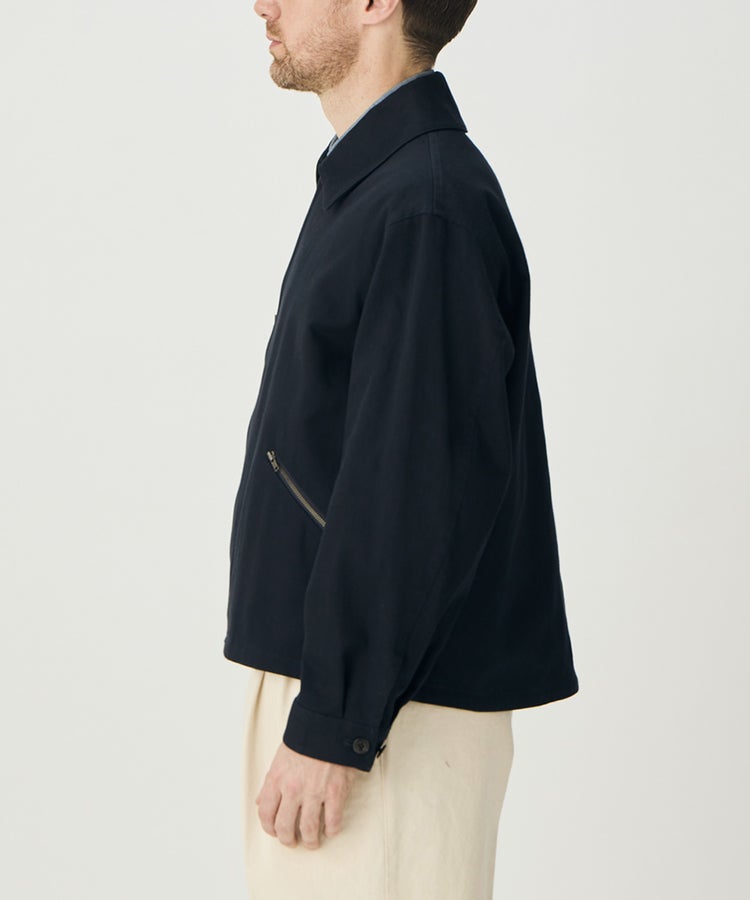 ハの字スラッシュジップポケットは、アクセスしやすい位置に変更するなど、実用性も高めています。さらに芯地の厚さやステッチの位置、運針といった細かい部分までこだわり、カジュアルなライトアウターという側面を持ちつつも上品な香りがするアイテムに仕上がっています。