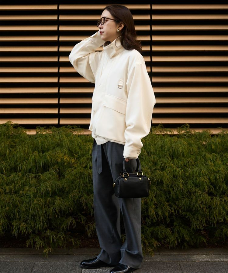 カジュアルなカテゴリーのアイテムですが、カットソーとワイドパンツに合わせても、綺麗めな着こなしに仕上がるところもポイント。裾のコードを思いきり絞って、さらにショート丈に折り込めば、足長効果も抜群です。