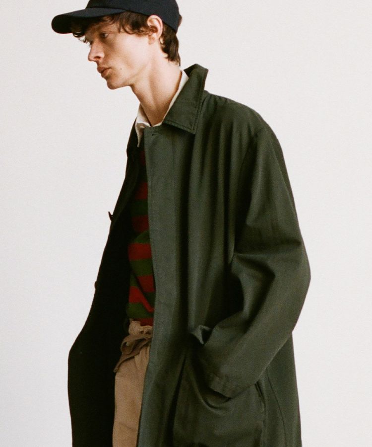 1960年代イギリスのマウンテンコートを現代的なアプローチでモディファイ。生地は60番双糸に追撚をかけて高密度で織り上げたドライタッチな生地を採用。さらに製品染めをかけることで、表面に独特なしっとりした微起毛感があり、ヴィンテージのような味わいある生地感に仕上がっています。