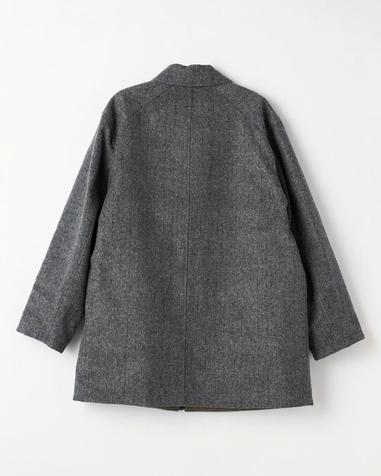 ウエストに配したドローコードによって、シルエットの変化を楽しむことができます。実用性を追求した収納設計が特徴で、左右のポケットはそれぞれ3方向(上部、横、フラップ下)からアクセス可能。タンブラーや折り畳み傘などを収納しても、両手を空けたランブリングを楽しめます。さらに、快適な着用感を実現するため、背面ヨークに設けた空気孔が熱をスムーズに逃がし、ムレを軽減する仕様になっています。リバーシブル仕様により、その日の気分や天候に合わせて表情を変えられる、多彩な活用が可能なコートです。