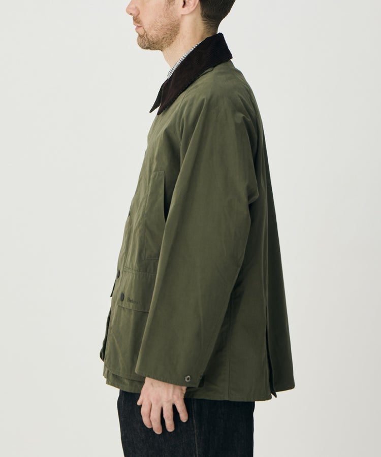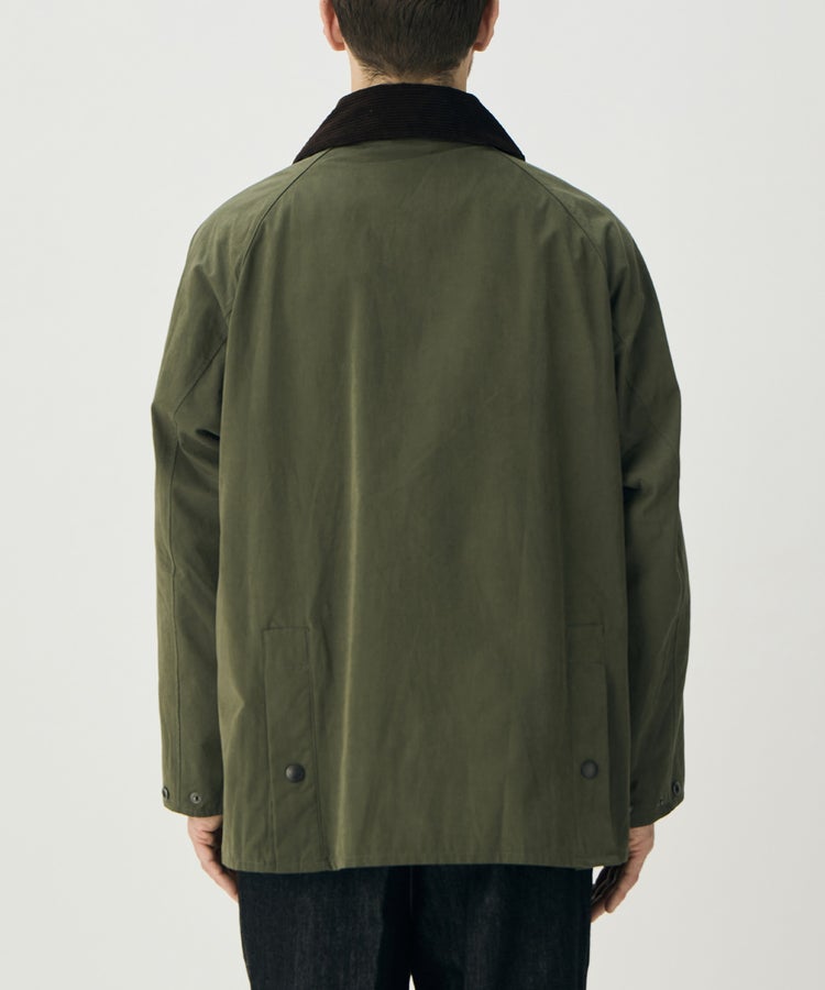 その名の通り、桃のように微起毛でしっとりとした滑らかな肌触りと軽やかな質感が特徴。もともと乗馬用ジャケットとして生み出され、ジョッキーたちのアドバイスを反映し、馬に乗った際に裾が突っ張ることなくきれいに着られるよう、サイドベンツ仕様になっています。また、ライディングポーズを優雅に保つため、丈が長めの作りです。こうした誕生背景を感じさせるデザインを楽しみつつ、ノンワックスならではの軽やかな着心地とクラシックモデルよりもややゆったりとしたシルエットも魅力。シーズンを問わず活躍できる一枚です。
