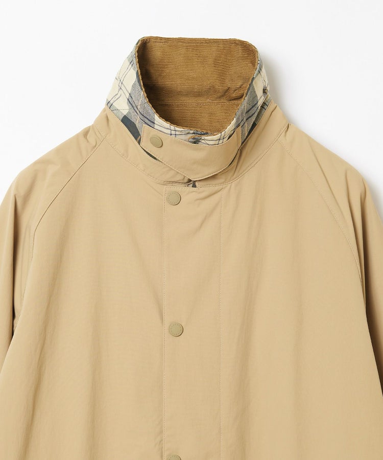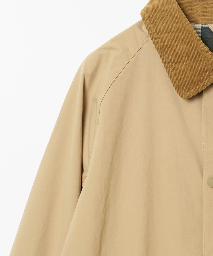 可動域の広いラグランスリーブやダブルジップなど、バブアー特有の機能的なデザインはそのままに、ハンドウォーマーポケットを配備し見た目はすっきりとシンプルに。コーデュロイの衿はチンストラップを備えており、衿を立てた時もしっかりホールドしてくれます。袖口には調節可能なスナップボタンを備えています。