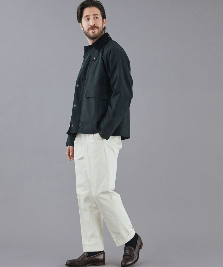 その名の通り、桃のように微起毛でしっとりとした滑らかな肌触りと軽やかな質感が特徴。ポケットディテールは定番モデルのトランスポート、スペイそれぞれをミックスさせたオリジナルディテール。バブアーらしいデザインを楽しみつつ、ノンワックスならではの軽やかな着心地でシーズンを問わず活躍する一枚です。