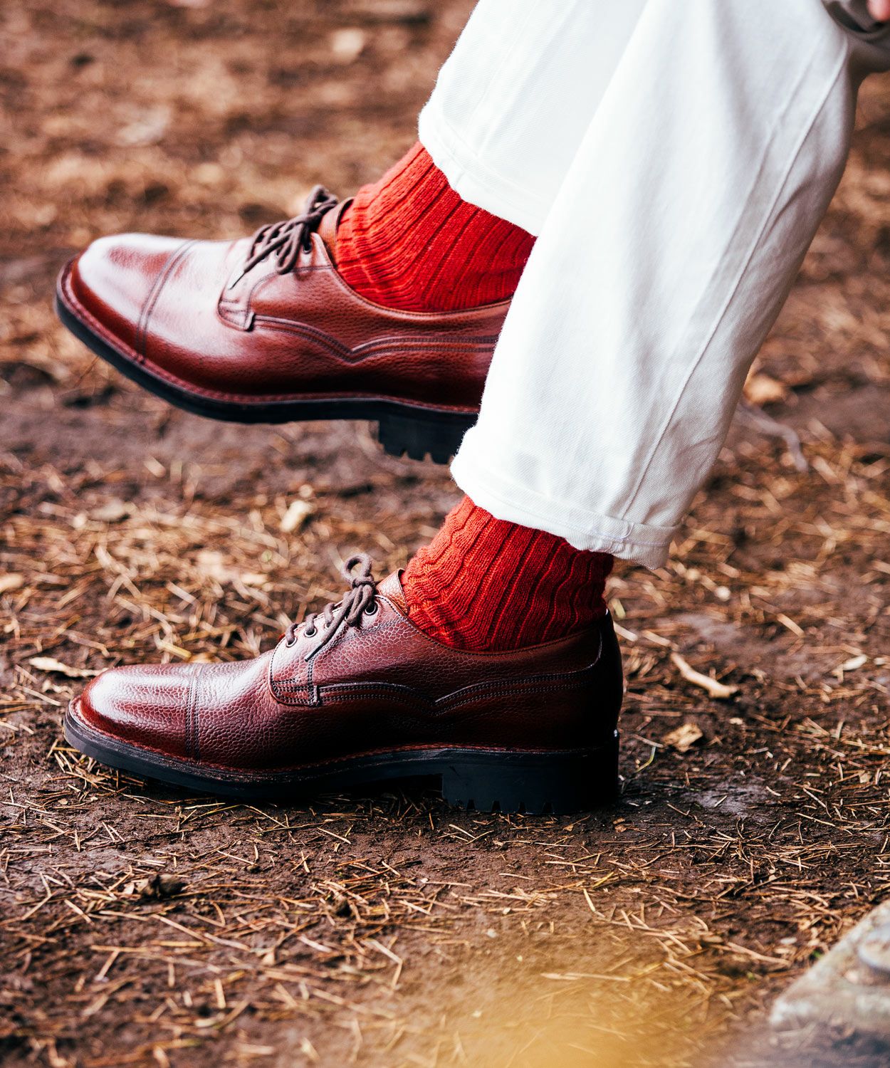 しかし、後年になると素朴でありながら独特な味わいがあり、男らしさを感じさせるデザインがファッションアイテムとしても注目されるようになります。過酷な戦地を踏破するために採用された頑丈な作り、そしてミリタリーシューズならではのディテールも機能美として愛好されてきました。