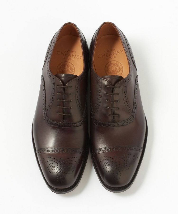 16世紀頃のスコットランドやアイルランドで履かれたブローギング(飾り穴)が施された靴は、通気性や水はけを良くする工夫としてあしらわれ、今では装飾性の高い意匠となって継承されています。控えめながらも華やかさが感じられるブローギングとトゥのメダリオンからは英国テイストが醸し出されています。内羽根式のセミブローグは都会的な印象を与え、オンからオフまで幅広い着こなしに合わせることができます。ソールに関しては気品がある雰囲気があり、使い込む事で経年変化が楽しめるシングルレザーソールです。