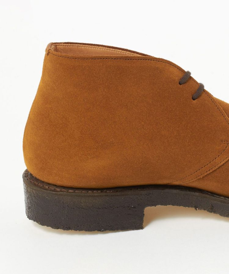 チャーチ定番の2アイレットのチャッカブーツRYDER(ライダー)。 厚みのあるクレープソールを採用し、レザーソールと比べて柔軟性に優れています。また、中敷はクッション性に富んでいてはき心地も抜群。木型には1950年代の登場から現在に至るまで愛され続けているラスト81を採用。丸みのあるラウンドトゥに、ボリューム感が備わったトゥバランスが魅力的なチャーチのカジュアルモデルを代表するラストです。つま先から甲にかけて、なだらかな傾斜で上がるため、甲周りのフィット感も快適です。 クレープソールを採用し厚みのあるソールでタフな印象です。クレープソールは素材の特性上、反発性に富んでいることから長時間歩いても疲れにくいのが特徴です。 ◆81 LAST(木型) チャーチのカジュアルラインに多く見られるラスト(木型)でドレスラインのラストより丸く少しボリュームのあるトゥが特徴。スエード定番タイプのモデルに採用されている。ブローグ、プレーントゥ、チャッカタイプなどもこのラストで表現されれば、ヨーロピアンカントリーの佇まいが感じられる。 ◆この商品の特徴 ・フィッティング F(ウィズ) ・グッドイヤーウェルテッド製法 カラーバリエーション BROWN MARACCA ◆より長くご愛用いただくために BRITISH MADEオリジナル メンズシューツリー ¥13,200(税込) シューツリーは、靴を大切に長くご愛用いただくための必須アイテム。愛用の靴をムレや型崩れから守ってくれる他、靴磨きの際にも入れておくと形が維持されるので磨きやすくなります。 あらゆるシーンで活躍するスエードシューズの魅力。 Church's / チャーチ Church’sは1873年、靴作りの町として有名なノーサンプトンで創業しました。正統派の英国靴として不動の地位を確立し、欧米のセレブリティや007のジェームズボンドも愛用することで知られています。チャーチのウェルト・シューズはグッドイヤー・ウェルト製法により、1足あたり250にもおよぶ工程を経て作られています。