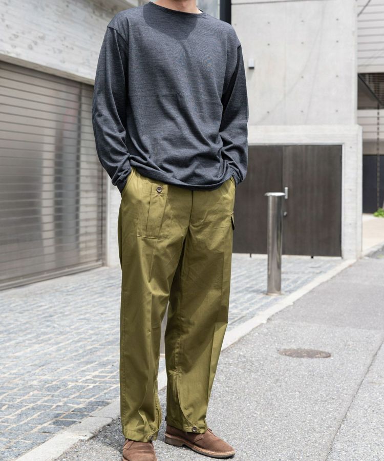保温性、防汚性、防臭・抗菌性の高い上質なメリノウールを厳選して使用。フライスやリブをソリッドデザインにしたことで、ベースレイヤーで着用したときもアウターに響かずにきれいに着用することが可能です。ネックはリブ無しなのでカジュアルに見えすぎることもなく襟元もスッキリ。1枚で着てもソリッドなシンプルさを感じさせてくれるアイテムです。