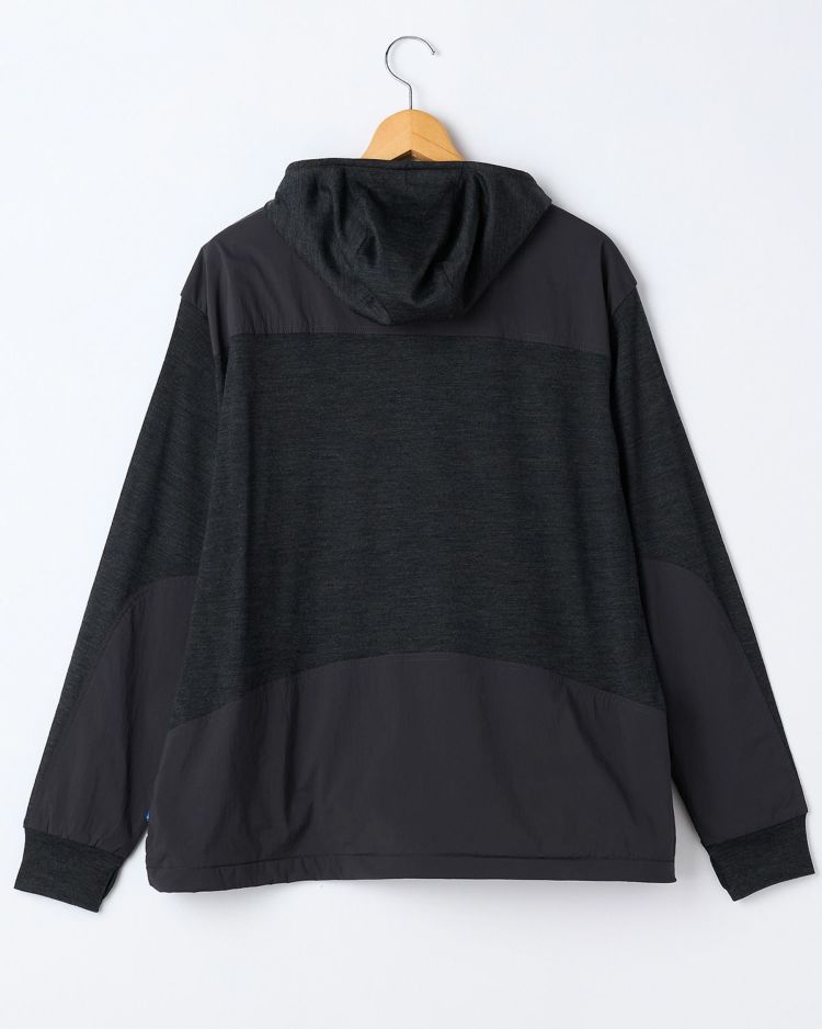 フードは小ぶりなデザインを採用し、かぶらない時も首元をしっかりと保温する実用的な仕様に。耐久性を要する肩、腰、肘の部分には高強度のナイロン生地を重ね合わせることで、ランブリング時の摩耗にも対応します。裾に配したドローコードにより、アクティビティやスタイリングに応じてシルエットの調整が可能です。ミリタリーウェアの機能的な要素を残しながら、ランブリングに相応しい実用性とデザイン性を兼ね備えた一着です。