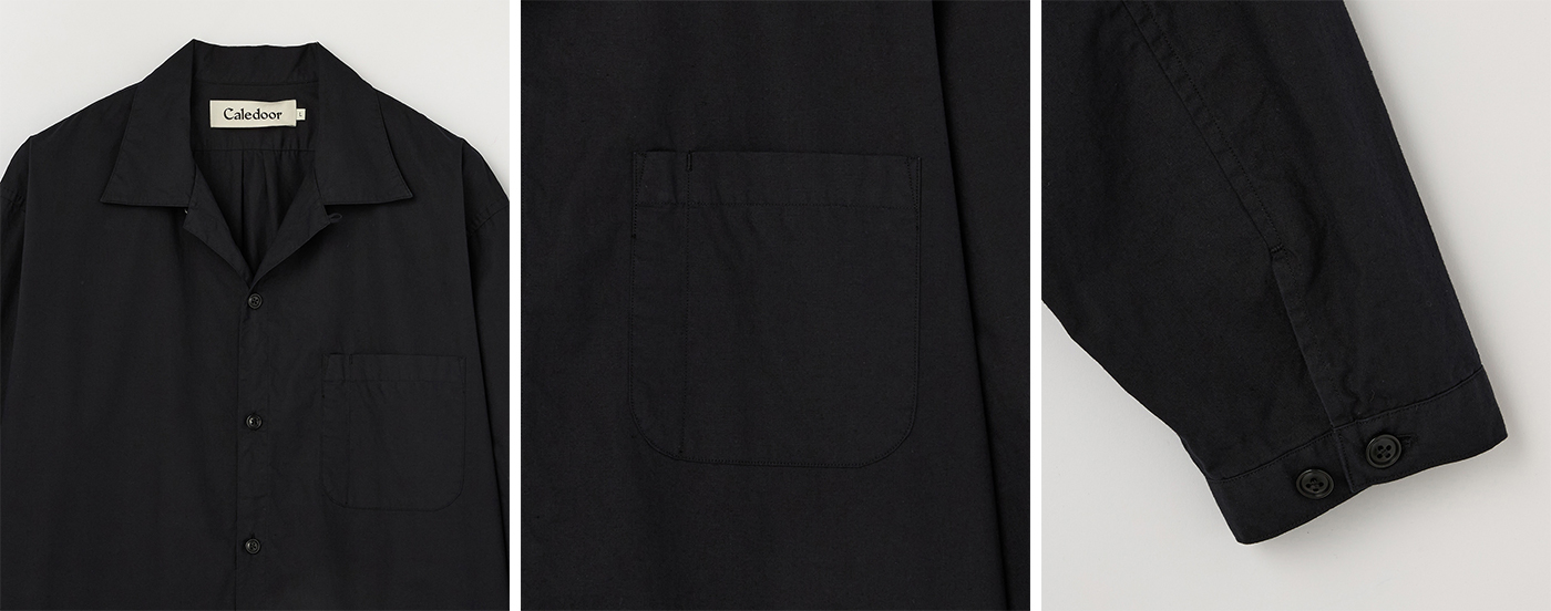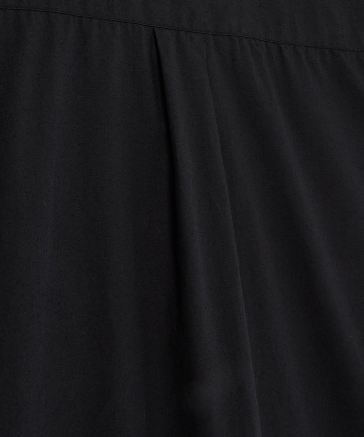 素材には、綿と麻の良さをバランスよく引き出した混紡素材であるコットンリネンタイプライター生地を使用。綿の柔らかさに加え、麻ならではの清涼感を感じさせる、高密度ながらも軽やかで程よいハリとコシが特徴です。麻を混紡することで清涼感のあるドライな雰囲気に仕上げ、通気性と吸水性を向上させています。夏場の肌のべたつきを防ぐ効果も期待できます。