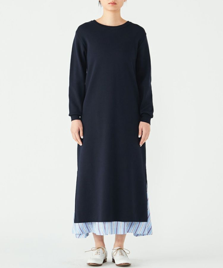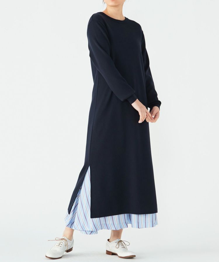 裾には長めに取ったスリットが入っており、スカートの柄をアクセントとして見せるなど、ボトムスとのレイヤードを楽しむことができます。余計な装飾がないミニマルなデザインにより、どんなアイテムとも合わせやすいのも魅力です。