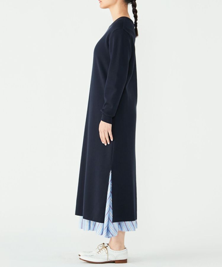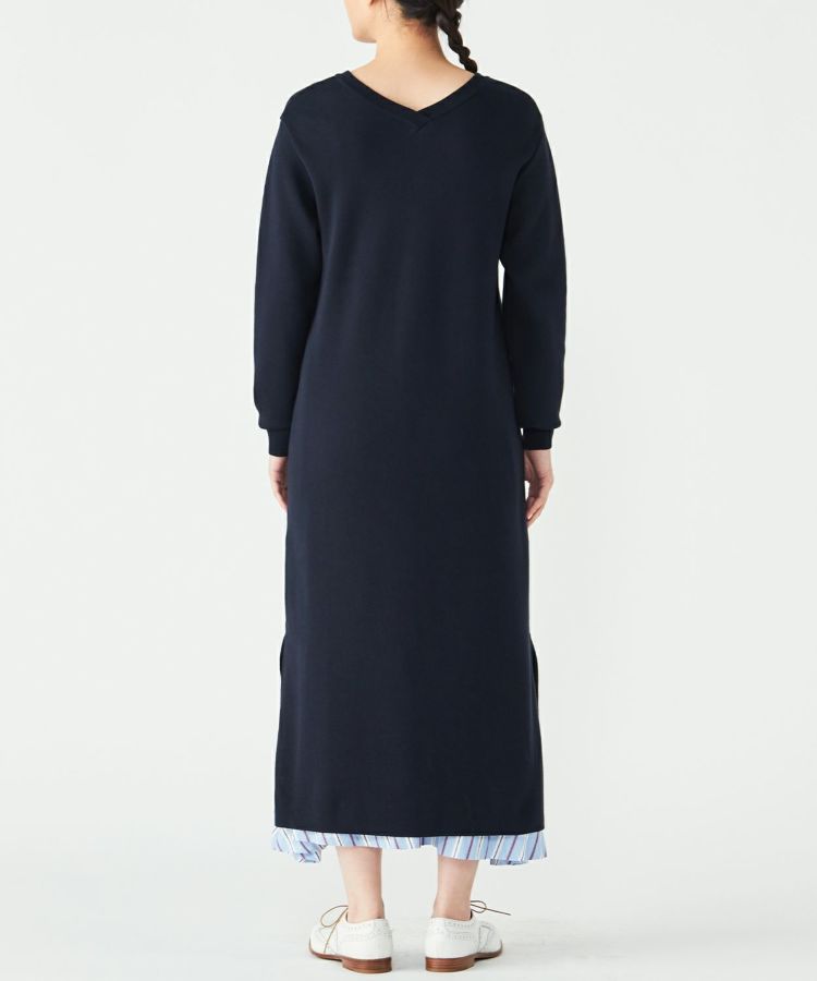 クルーネックとVネックの2パターン楽しめる2way仕様のニットワンピース。