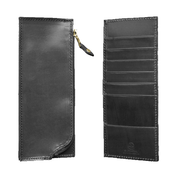 スーツの内ポケットに入れた際もスーツのシルエットを崩さず、シンプルな表情なのでどんなスタイルにもマッチするデザイン。レザーの質感を活かした仕上げはエイジングの美しさをより一層際立たせてくれます。ビジネスマンの所作をスマートに演出してくれる、スーツスタイルの名脇役にして正統派長財布です。
