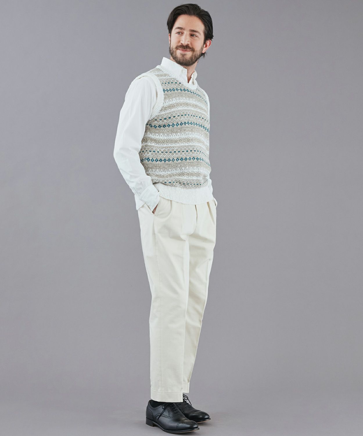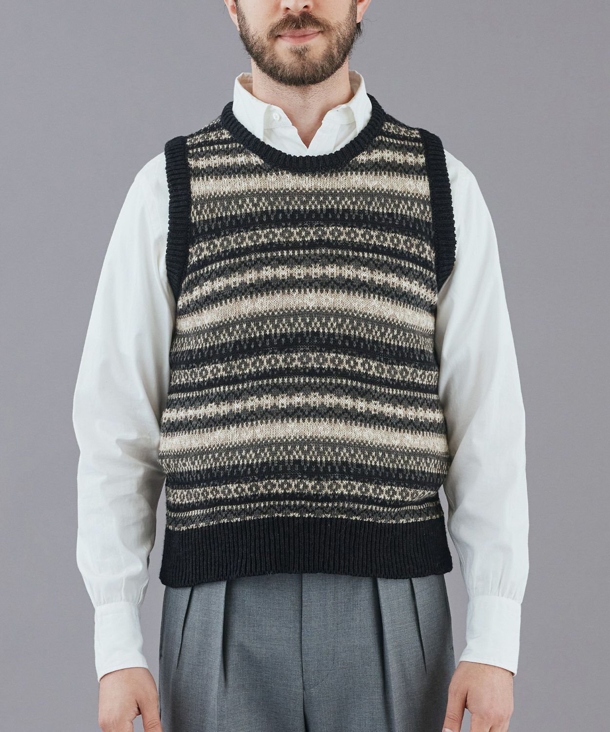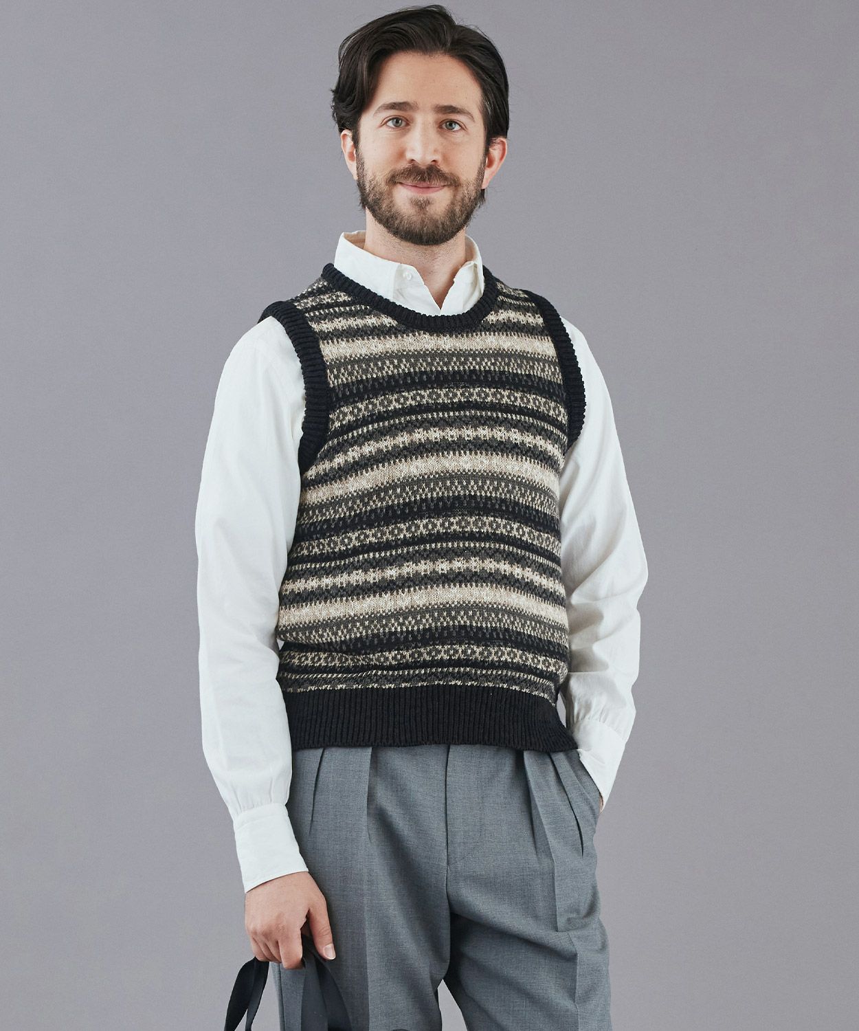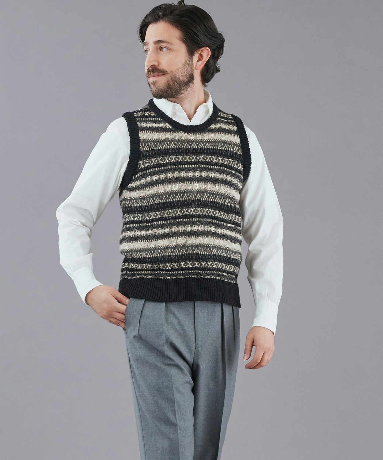 OUTLET 他の画像を見る BRITISH MADE フェアアイルベスト/ウーラクーム(リネンコットン)(MEN) 全3色 定価 ¥ 28,600 のところ PRICE ¥ 14,300 税込 お気に入りに登録する