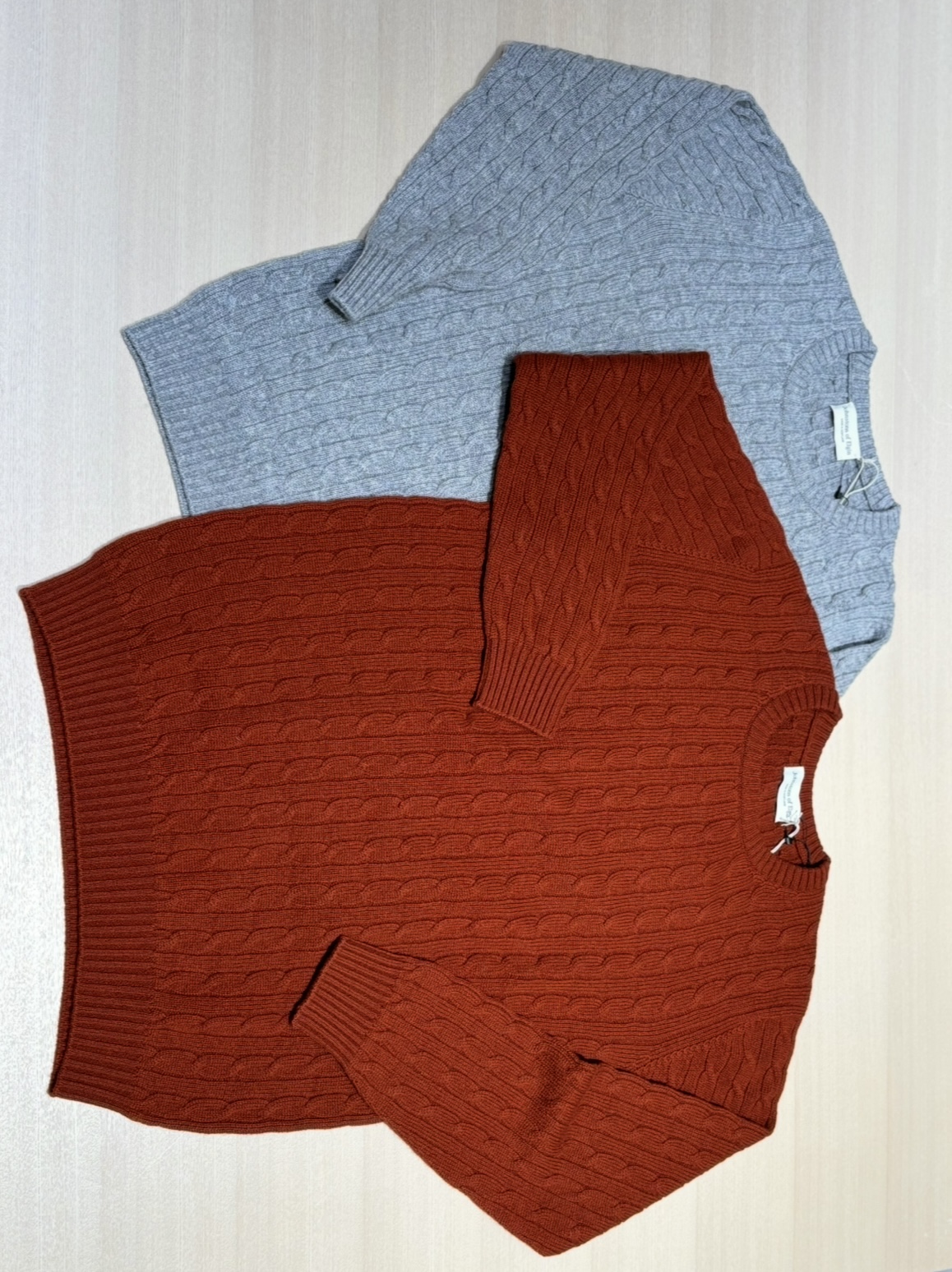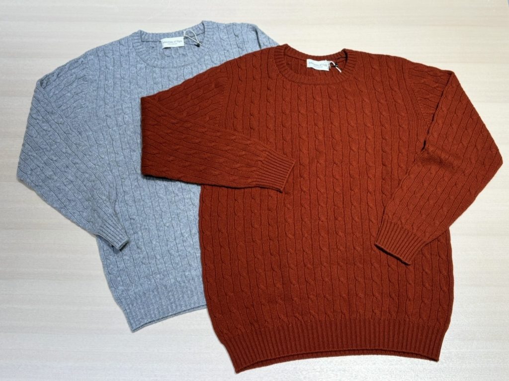 どちらも同じカシミアでも編み地によって変わった表情を魅せてくれるジョンストンズのニットです。それぞれの違いも実際に比較していただきたいです。