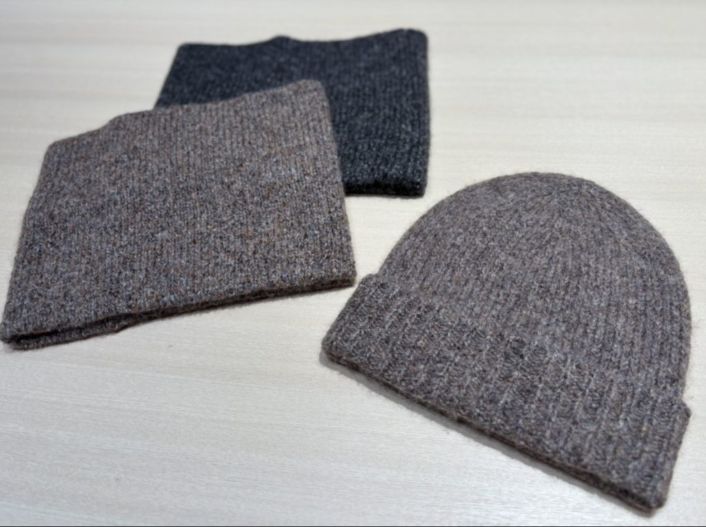 同じ素材・カラーのキャップやスヌードもあり、揃えるのもいいですよね。