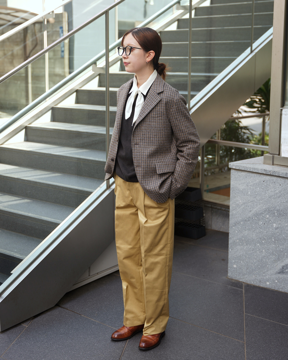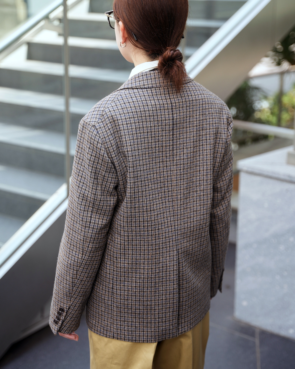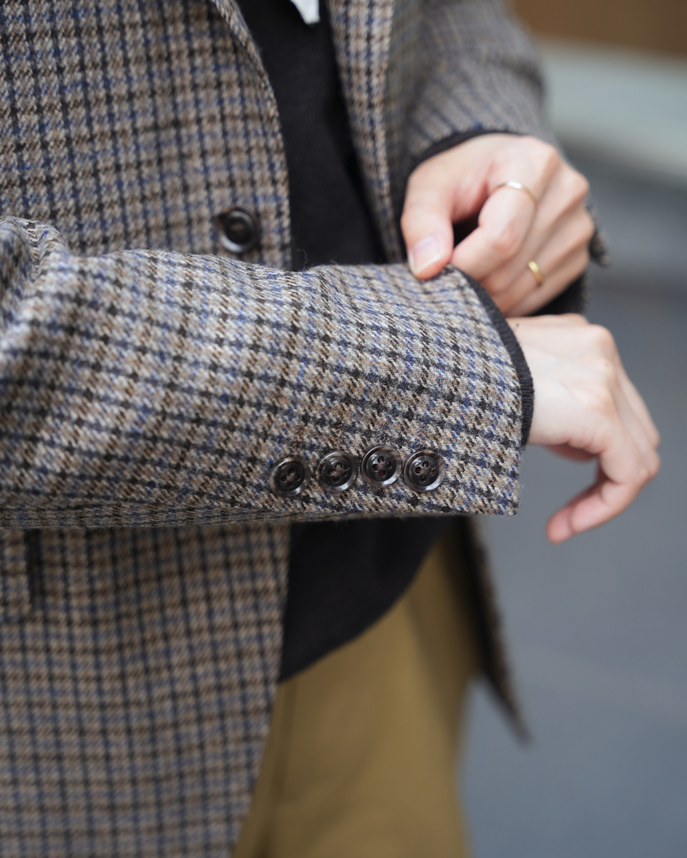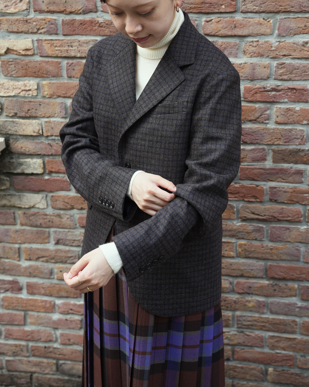 きれいめにもカジュアルにも振れる万能さで、トラッド好きのワードローブを支える「チェックジャケット」。今季のウィメンズには、英国らしさが薫るガンクラブチェックが登場し、好評を集めています。ほどよく厚みのある素材感で、秋の羽織りとしても活躍。汎用性高く頼れる一枚を、スタッフ着用でご紹介します。