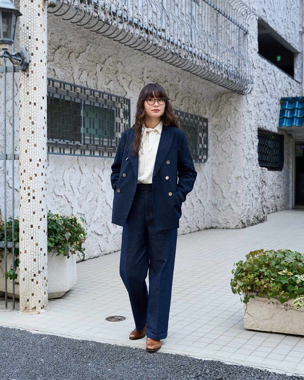 ボトム:デニムワーキングトラウザーズ ¥26,400(身長 167cm / 38サイズ着用)