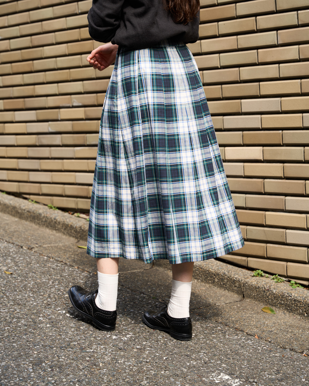 ソフトプリーツチェックスカート 全3色 ¥27,500(macalastair)シンプルでマンネリしがちな春夏のワードローブには、柄物の投入が効果的。〈マカラスター〉のチェックスカートなら、落ち着いた配色とほどよい丈感で、重たく見えないようデザインされていて春アウターとも好相性◎ カジュアルにもきれいめにもマッチする汎用性の高い一枚です。